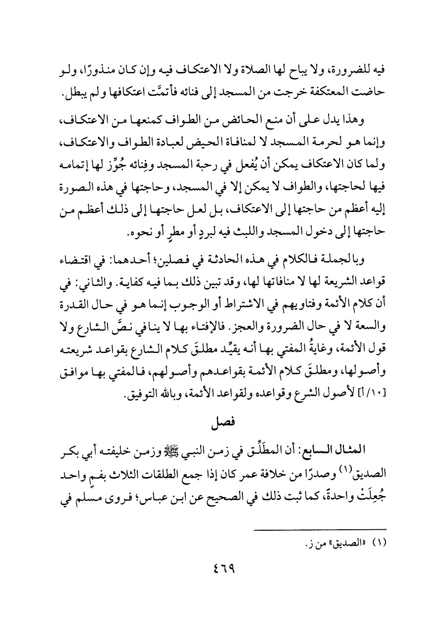 وبالجملة فالكلام في هذه الحادثة في فصلين؛ أحدهما: في اقتضاء قواعد الشريعة لها لا منافاتها لها، وقد تبين ذلك بما فيه كفاية. والثاني: في أن كلام الأئمة وفتاويهم في الاشتراط أو الوجوب إنما هو في حال القدرة والسعة لا في حال الضرورة والعجز. فالإفتاء بها لا ينافي نصَّ الشارع ولا قول الأئمة، وغايةُ المفتي بها أنه يقيِّد مطلقَ كلام الشارع بقواعد شريعته وأصولها، ومطلقَ كلام الأئمة بقواعدهم وأصولهم، فالمفتي بها موافق [١٠/أ] لأصول الشرع وقواعده ولقواعد الأئمة، وبالله التوفيق.