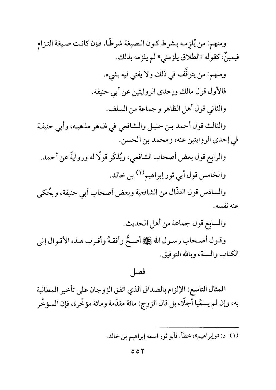 والخامس قول أبي ثور إبراهيم (¬١) بن خالد.