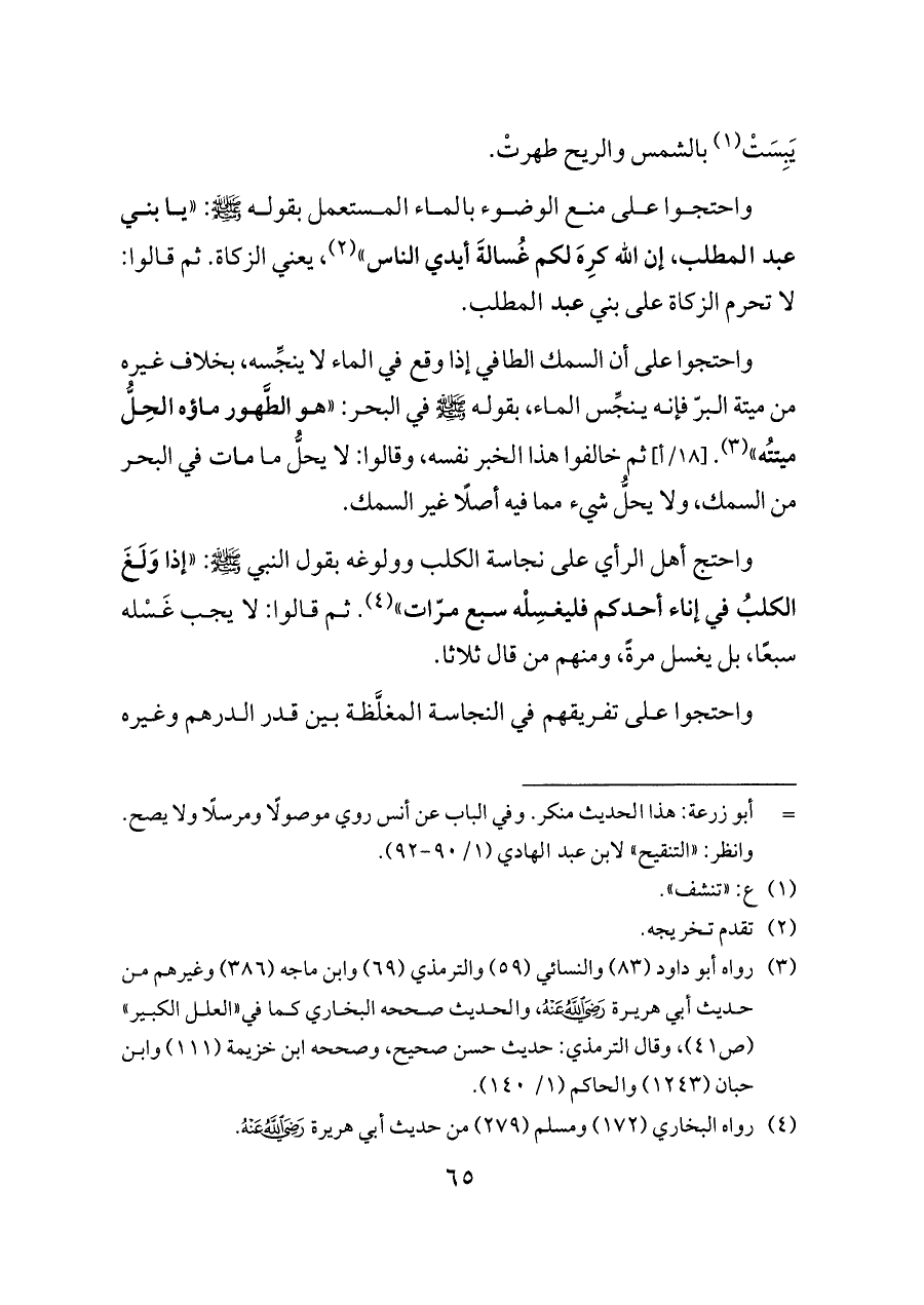 (¬٣) رواه أبو داود (٨٣) والنسائي (٥٩) والترمذي (٦٩) وابن ماجه (٣٨٦) وغيرهم من حديث أبي هريرة - رضي الله عنه -، والحديث صححه البخاري كما في «العلل الكبير» (ص ٤١)، وقال الترمذي: حديث حسن صحيح، وصححه ابن خزيمة (١١١) وابن حبان (١٢٤٣) والحاكم (١/ ١٤٠).