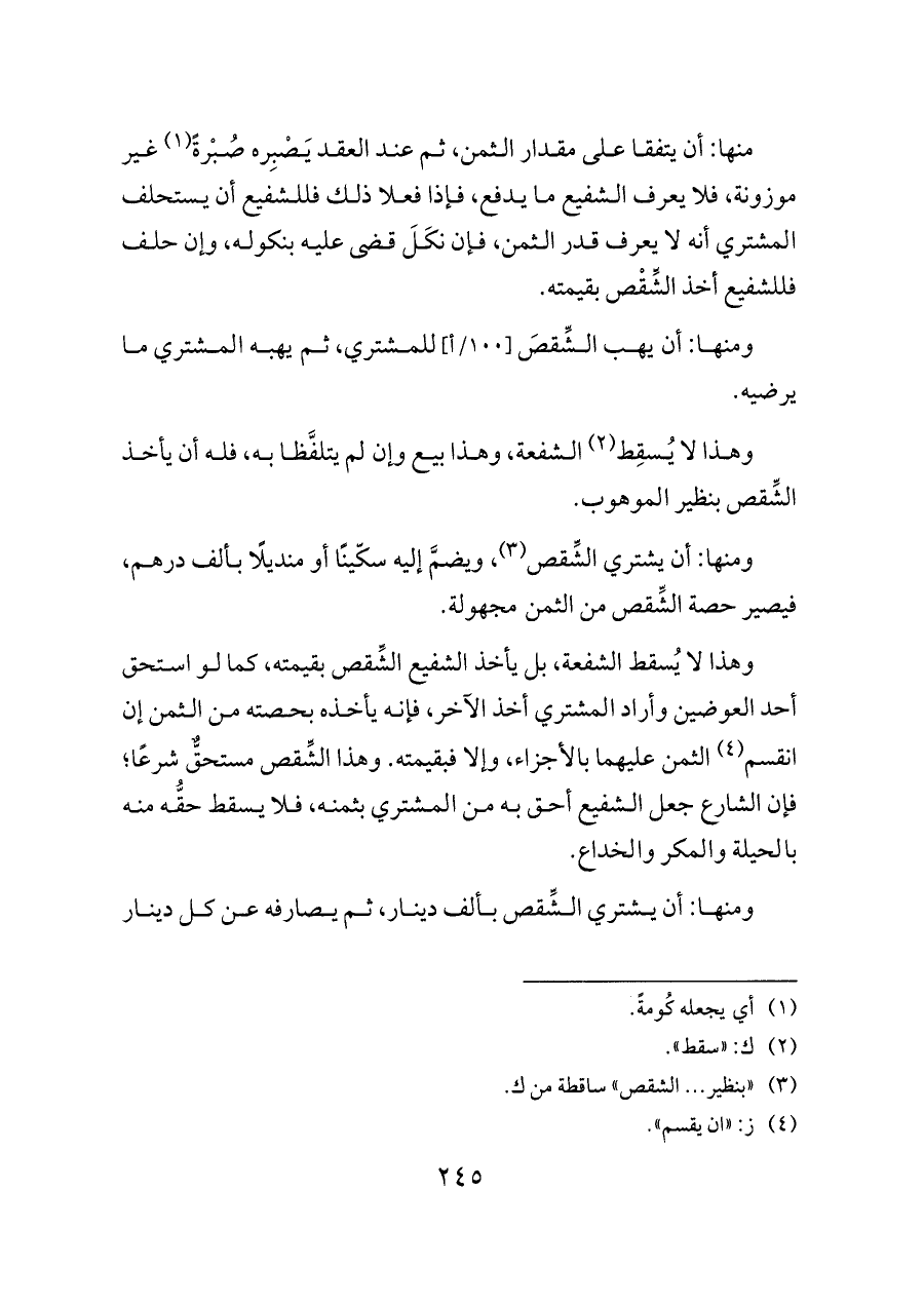 ومنها: أن يشتري الشِّقص بألف دينار، ثم يصارفه عن كل دينار