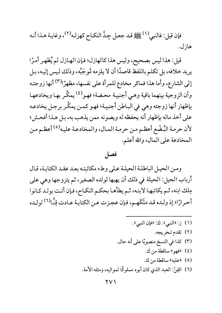 قيل: هذا ليس بصحيح، وليس هذا كالهازل؛ فإن الهازل لم يُظهر أمرًا يريد خلافه، بل تكلم باللفظ قاصدًا أن لا يلزمه مُوجَبُه، وذلك ليس إليه، بل إلى الشارع، وأما هذا فماكر مخادع للمرأة على نفسها، مظهرًا (¬٣) أنها زوجته وأن الزوجية بينهما باقية وهي أجنبية محضة؛ فهو (¬٤) يمكُر بها ويخادعها بإظهار أنها زوجته وهي في الباطن أجنبية؛ فهو كمن يمكُر برجل يخادعه على أخذ ماله بإظهار أنه يحفظه له ويصونه ممن يذهب به، بل هذا أفحش؛ لأن حرمة البُضْع أعظم من حرمة المال، والمخادعة عليه (¬٥) أعظم من المخادعة على المال، والله أعلم.