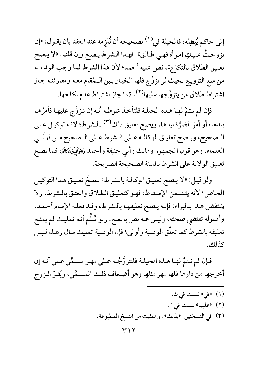 فإن لم تتمَّ لها هذه الحيلة فلتأخذ شرطه أنه إن تزوَّج عليها فأمرُها بيدها، أو أمرُ الضرَّة بيدها، ويصح تعليق ذلك (¬٣) بالشرط؛ لأنه توكيل على الصحيح، ويصح تعليق الوكالة على الشرط على الصحيح من قولَي العلماء، وهو قول الجمهور ومالك وأبي حنيفة وأحمد - رضي الله عنهم -، كما يصح تعليق الولاية على الشرط بالسنة الصحيحة الصريحة.