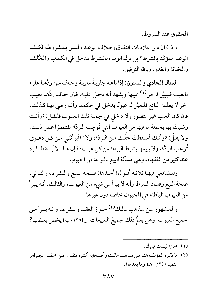 (¬٢) ما ذكره المؤلف هنا من مذهب مالك وأصحابه أكثره منقول من «عقد الجواهر الثمينة» (٢/ ٤٨٠ وما بعدها).