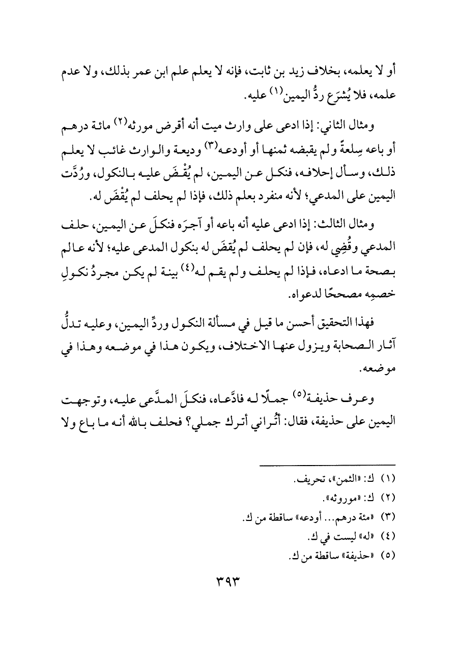 فهذا التحقيق أحسن ما قيل في مسألة النكول وردِّ اليمين، وعليه تدلُّ آثار الصحابة ويزول عنها الاختلاف، ويكون هذا في موضعه وهذا في موضعه.