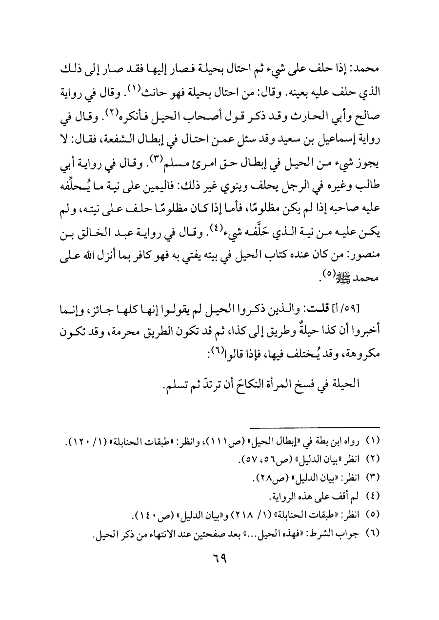 (¬٦) جواب الشرط: «فهذه الحيل ... » بعد صفحتين عند الانتهاء من ذكر الحيل.