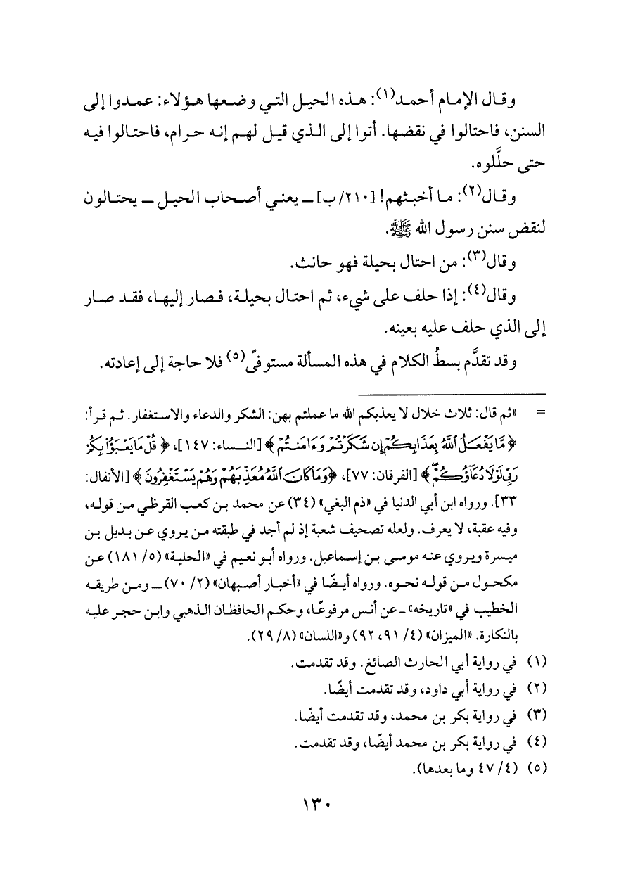 وقال (¬٢): ما أخبثهم! [٢١٠/ب]ــ يعني أصحاب الحيل ــ يحتالون لنقض سنن رسول الله - صلى الله عليه وسلم -.