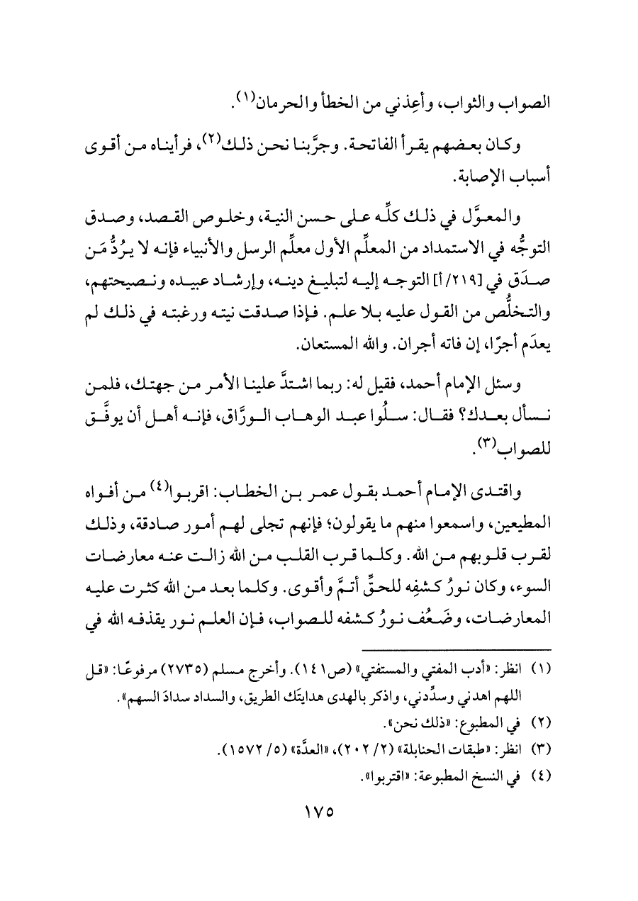 (¬١) انظر: «أدب المفتي والمستفتي» (ص ١٤١). وأخرج مسلم (٢٧٣٥) مرفوعًا: «قل اللهم اهدني وسدِّدني، واذكر بالهدى هدايتَك الطريق، والسداد سدادَ السهم».