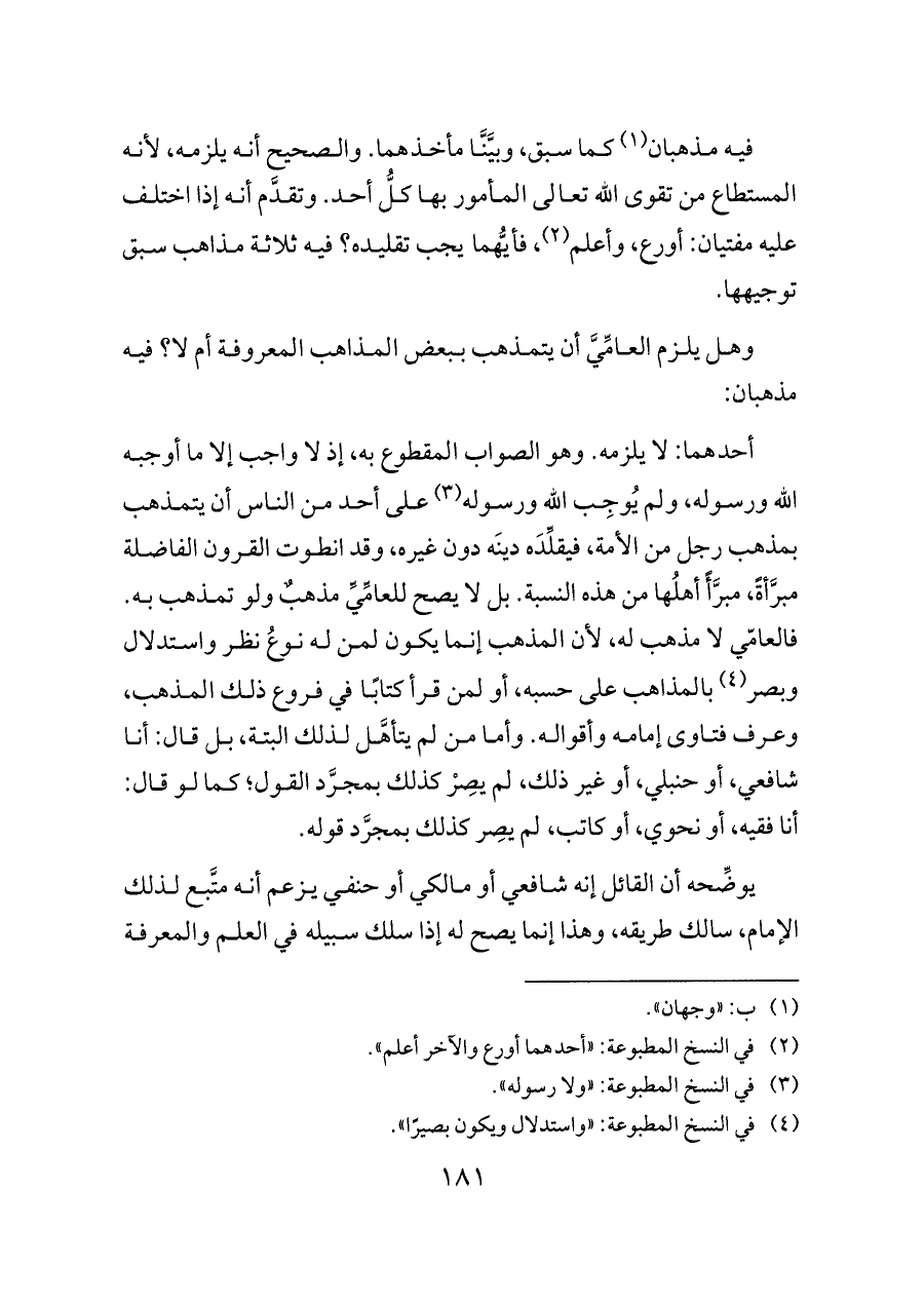 وهل يلزم العامِّيَّ أن يتمذهب ببعض المذاهب المعروفة أم لا؟ فيه مذهبان: