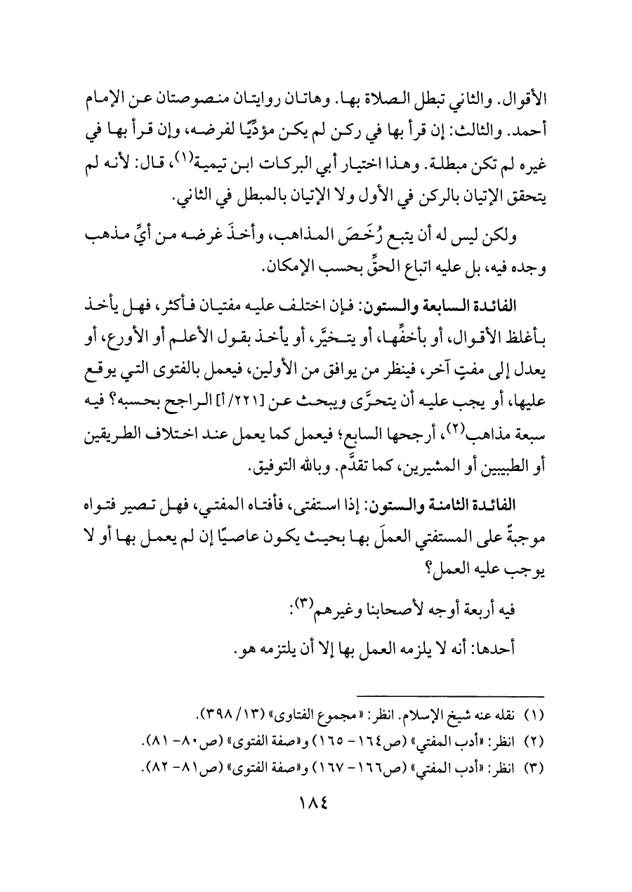 (¬٣) انظر: «أدب المفتي» (ص ١٦٦ - ١٦٧) و «صفة الفتوى» (ص ٨١ - ٨٢).
