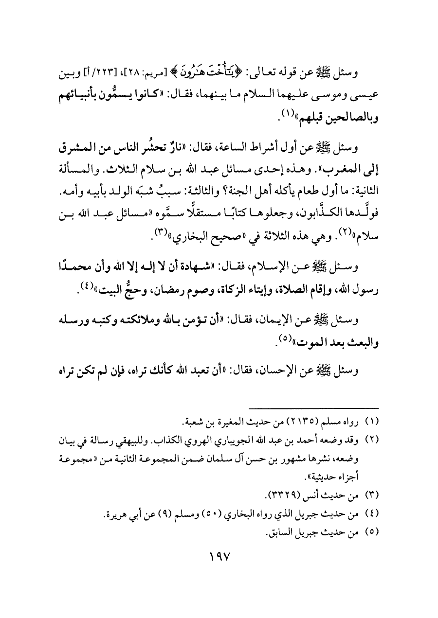 (¬٥) من حديث جبريل السابق.