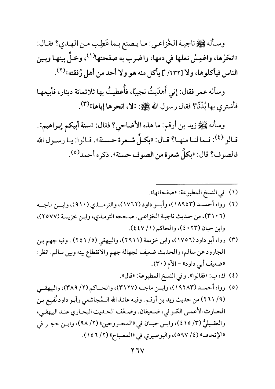 (¬٢) رواه أحمد (١٨٩٤٣)، وأبو داود (١٧٦٢)، والترمذي (٩١٠)، وابن ماجه (٣١٠٦)، من حديث ناجية الخزاعي. صححه الترمذي، وابن خزيمة (٢٥٧٧)، وابن حبان (٤٠٢٣)، والحاكم (١/ ٤٤٧).