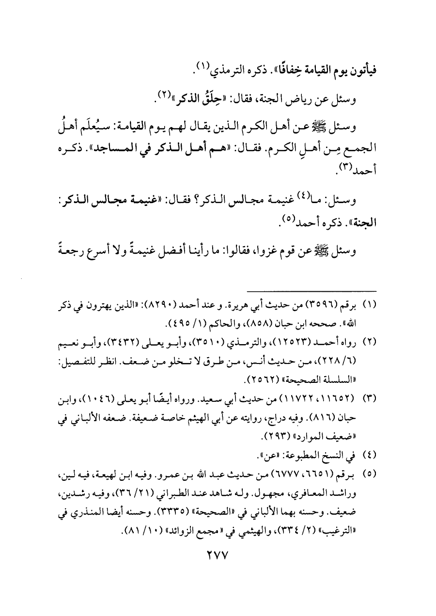 فيأتون يوم القيامة خِفافًا». ذكره الترمذي (¬١).