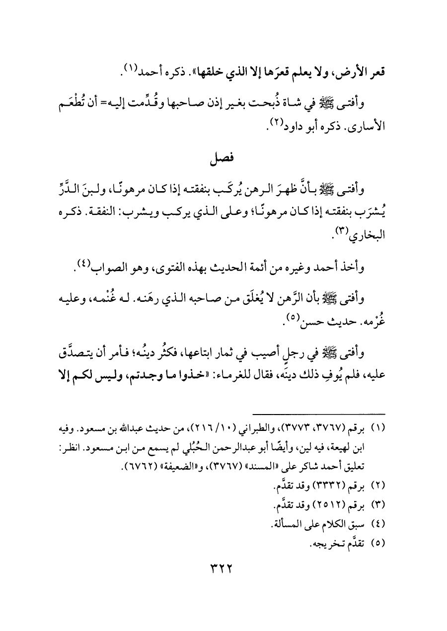 وأفتى - صلى الله عليه وسلم - بأن الرَّهن لا يُغلَق من صاحبه الذي رهَنه. له غُنْمه، وعليه غُرْمه. حديث حسن (¬٥).