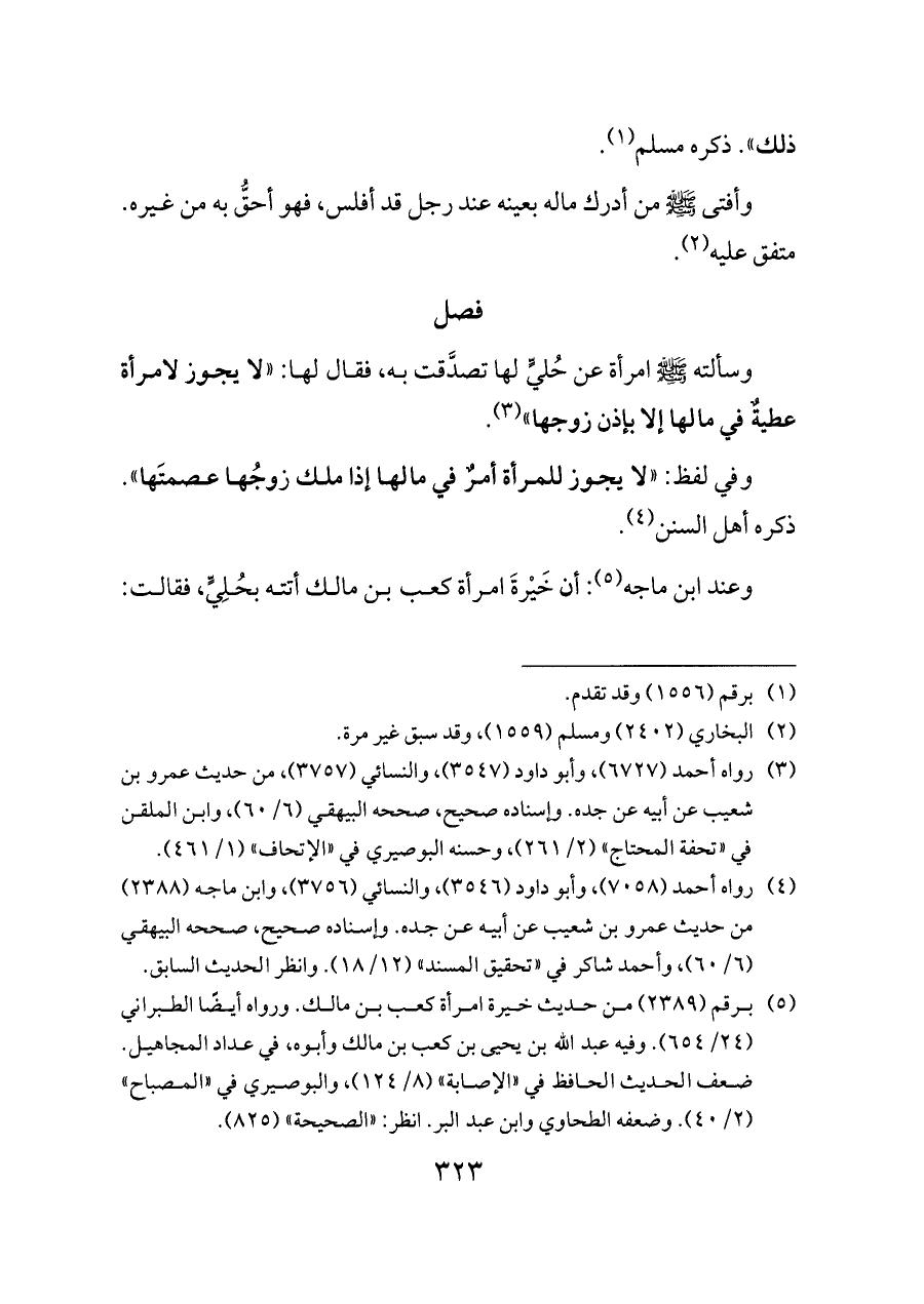 (¬٣) رواه أحمد (٦٧٢٧)، وأبو داود (٣٥٤٧)، والنسائي (٣٧٥٧)، من حديث عمرو بن شعيب عن أبيه عن جده. وإسناده صحيح، صححه البيهقي (٦/ ٦٠)، وابن الملقن في «تحفة المحتاج» (٢/ ٢٦١)، وحسنه البوصيري في «الإتحاف» (١/ ٤٦١).