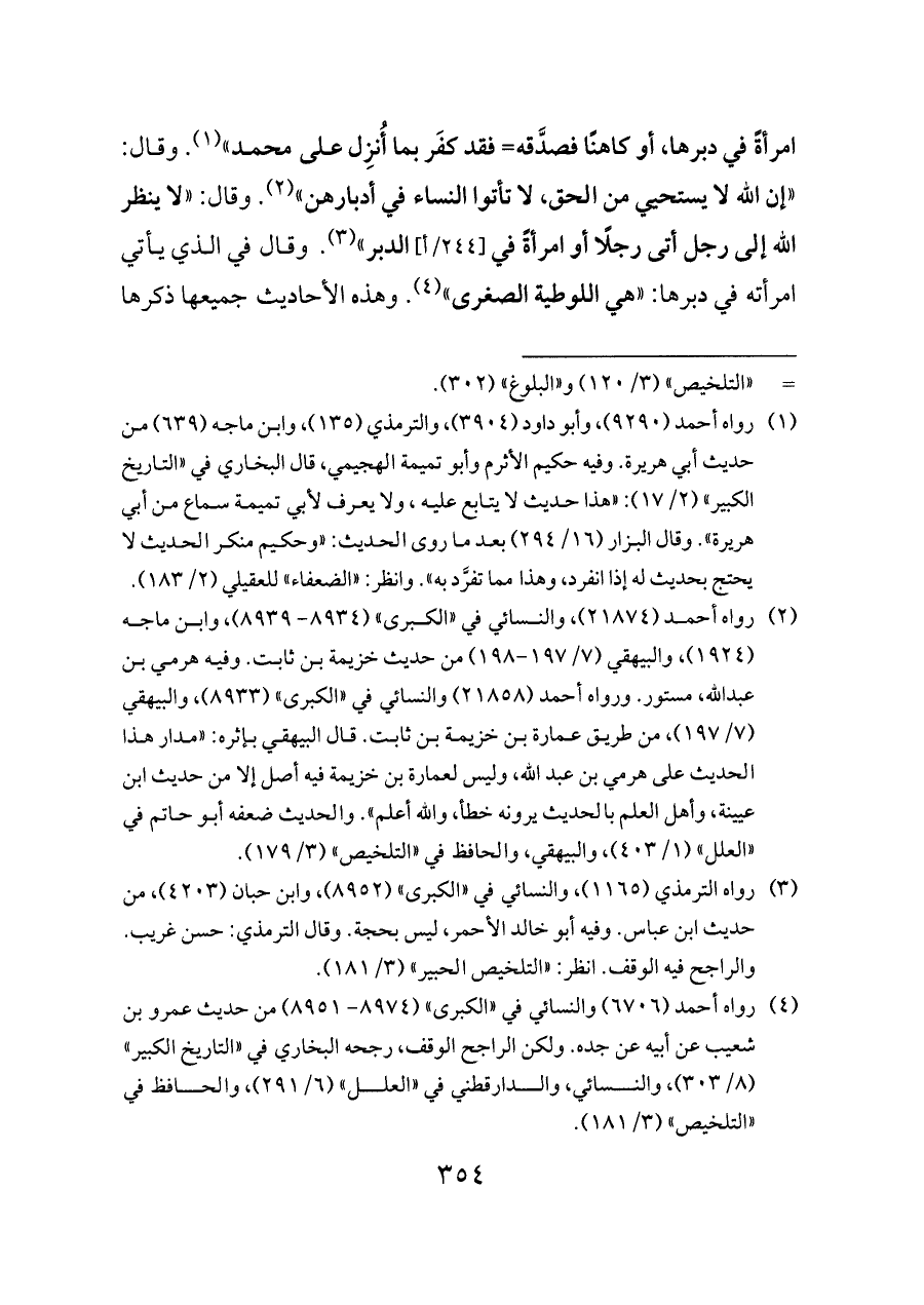وقال في الذي يأتي امرأته في دبرها: «هي اللوطية الصغرى» (¬٤). وهذه الأحاديث جميعها ذكرها