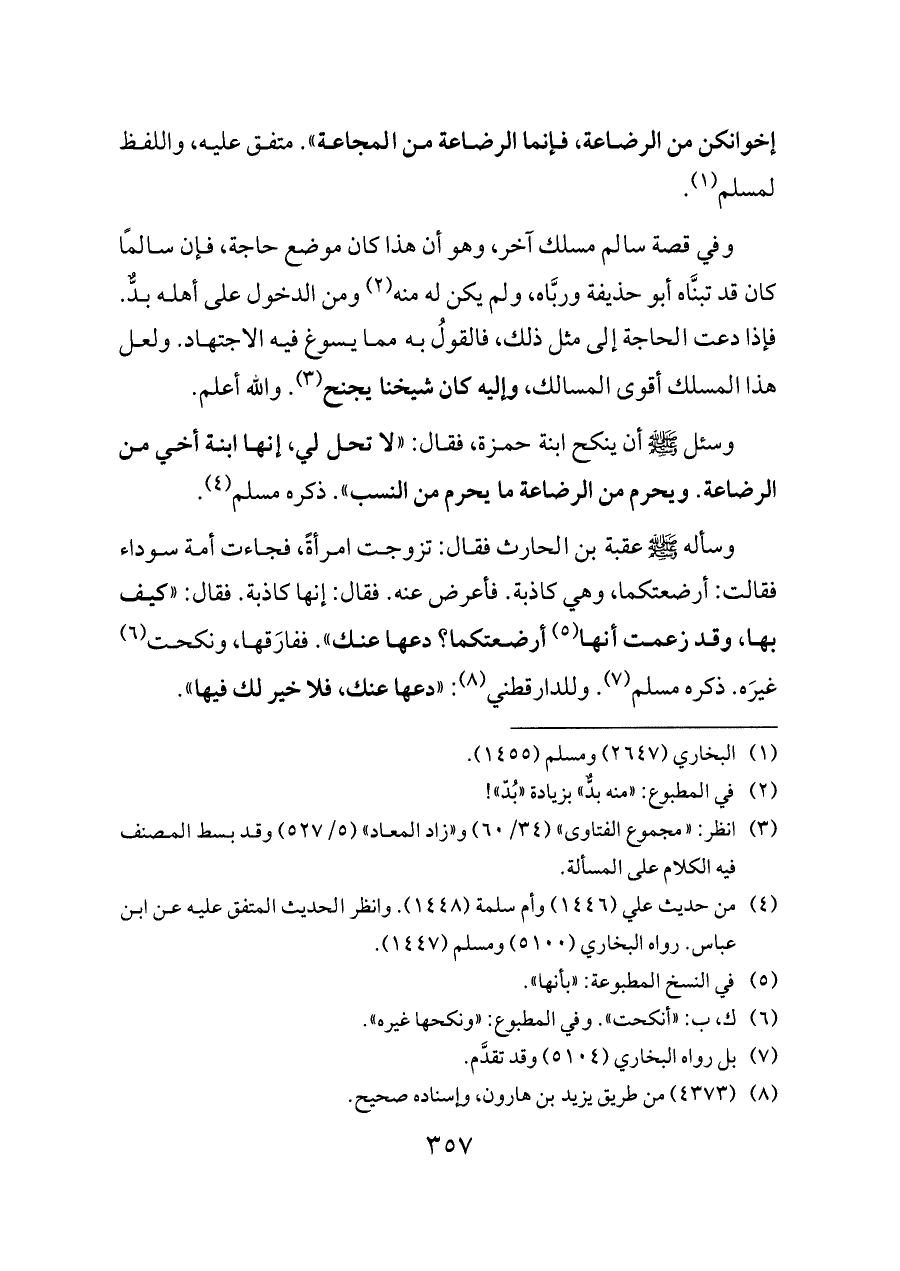(¬٤) من حديث علي (١٤٤٦) وأم سلمة (١٤٤٨). وانظر الحديث المتفق عليه عن ابن عباس. رواه البخاري (٥١٠٠) ومسلم (١٤٤٧).