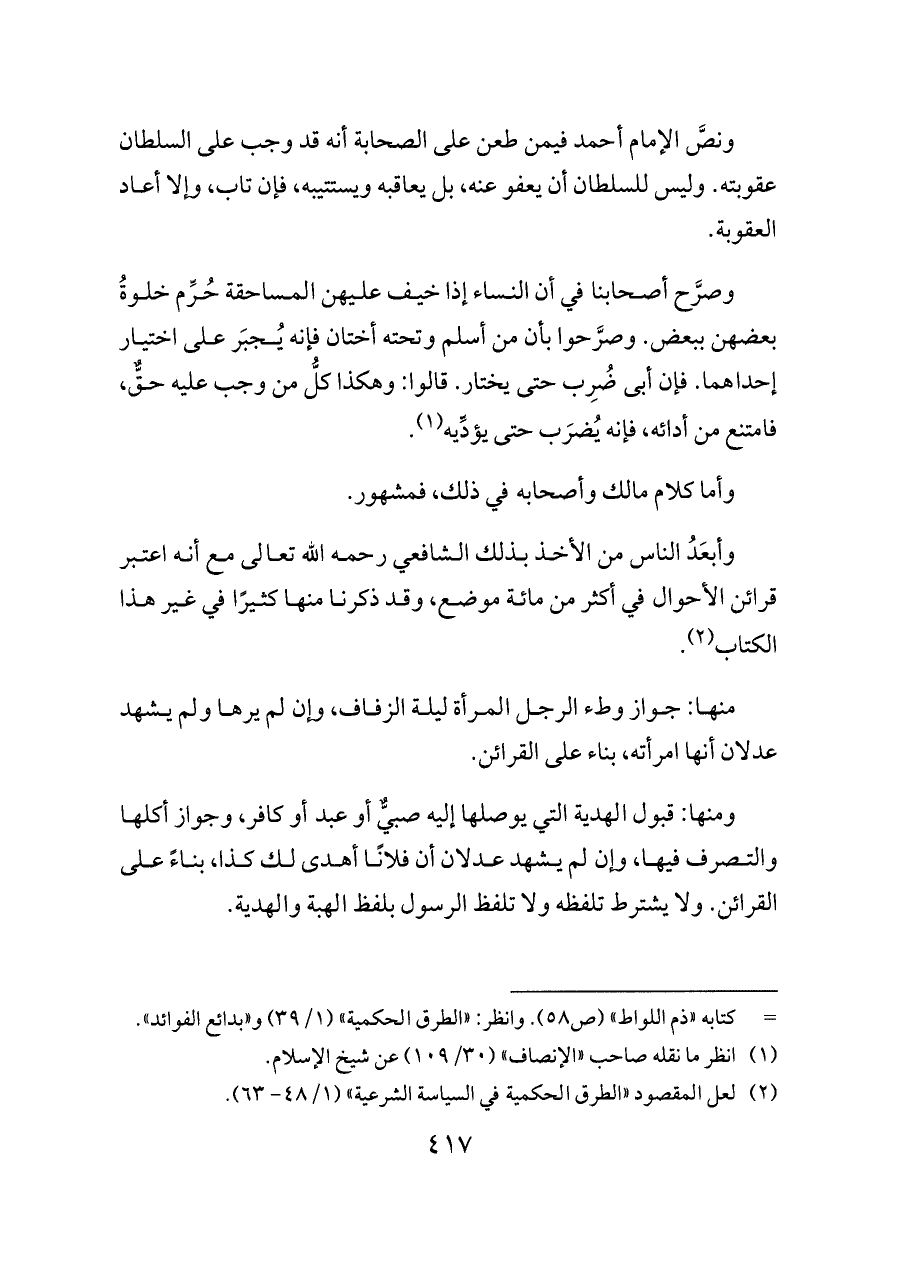 (¬٢) لعل المقصود «الطرق الحكمية في السياسة الشرعية» (١/ ٤٨ - ٦٣).