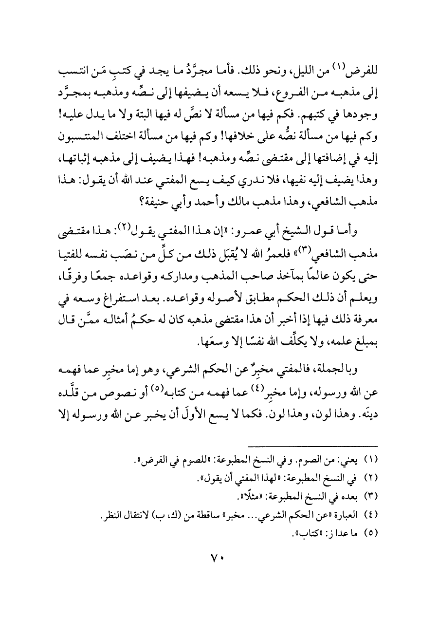 (¬٢) في النسخ المطبوعة: «لهذا المفتي أن يقول».