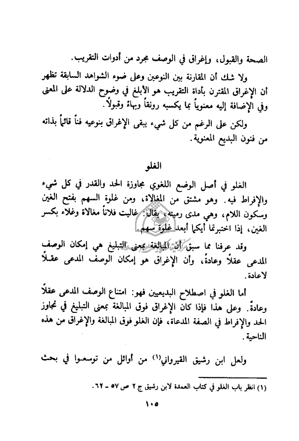 (¬1) انظر باب الغلو في كتاب العمدة لا بن رشيق ج 2 ص 57 - 62.