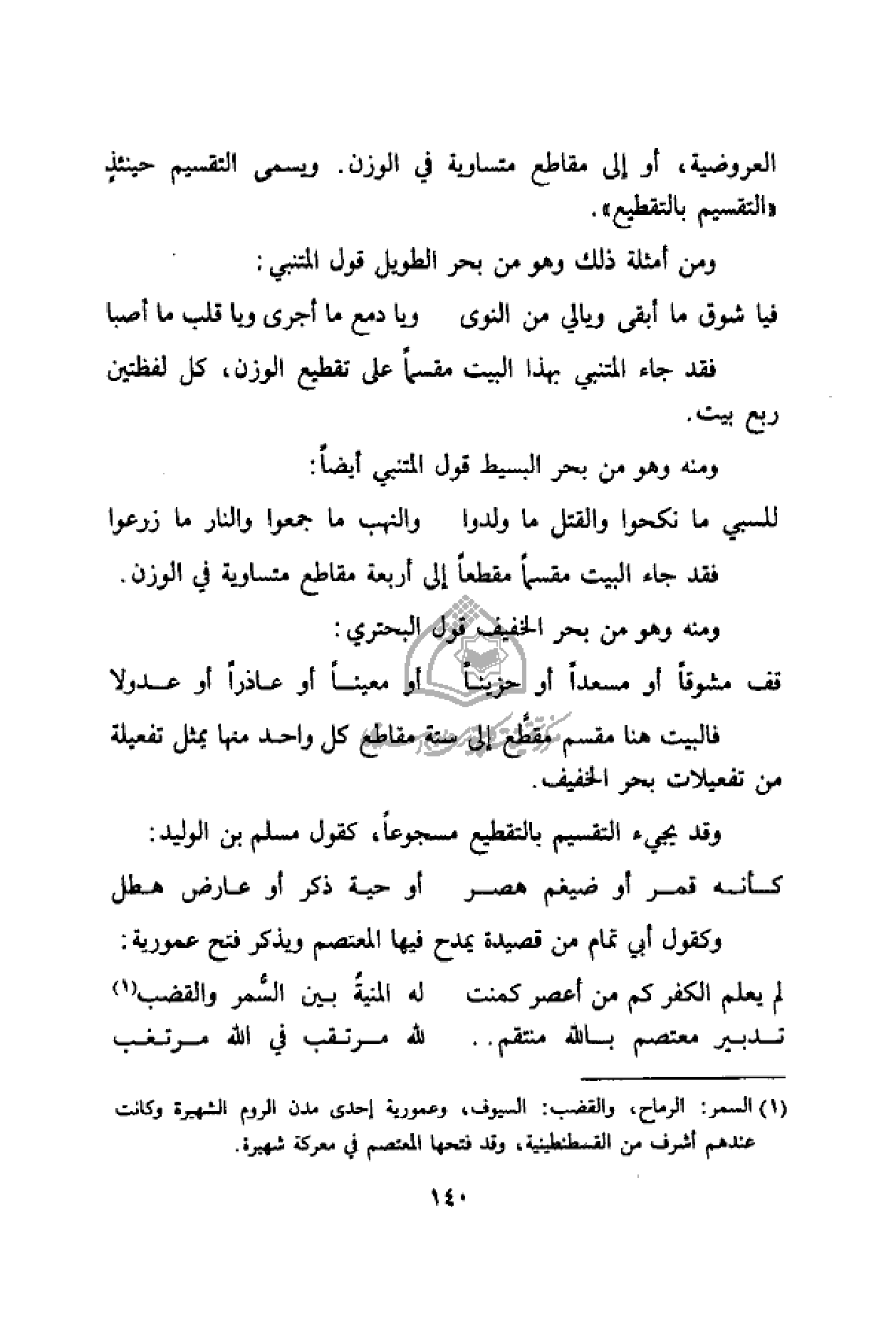 (¬1) السمر: الرماح، والقضب: السيوف، وعمورية إحدى مدن الروم الشهيرة وكانت عندهم أشرف من القسطنطينية، وقد فتحها المعتصم في معركة شهيرة.