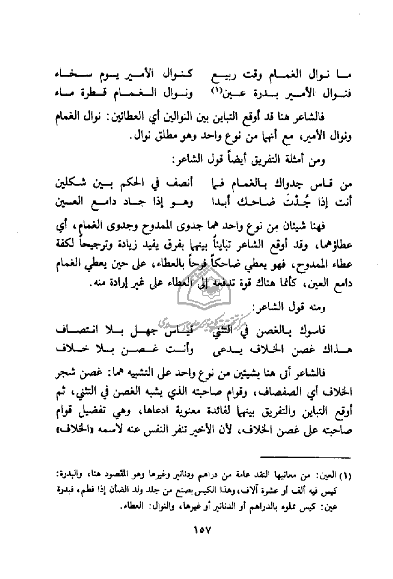 (¬1) العين: من معانيها النقد عامة من دراهم ودنانير وغيرها وهو المقصود هنا، والبدرة: