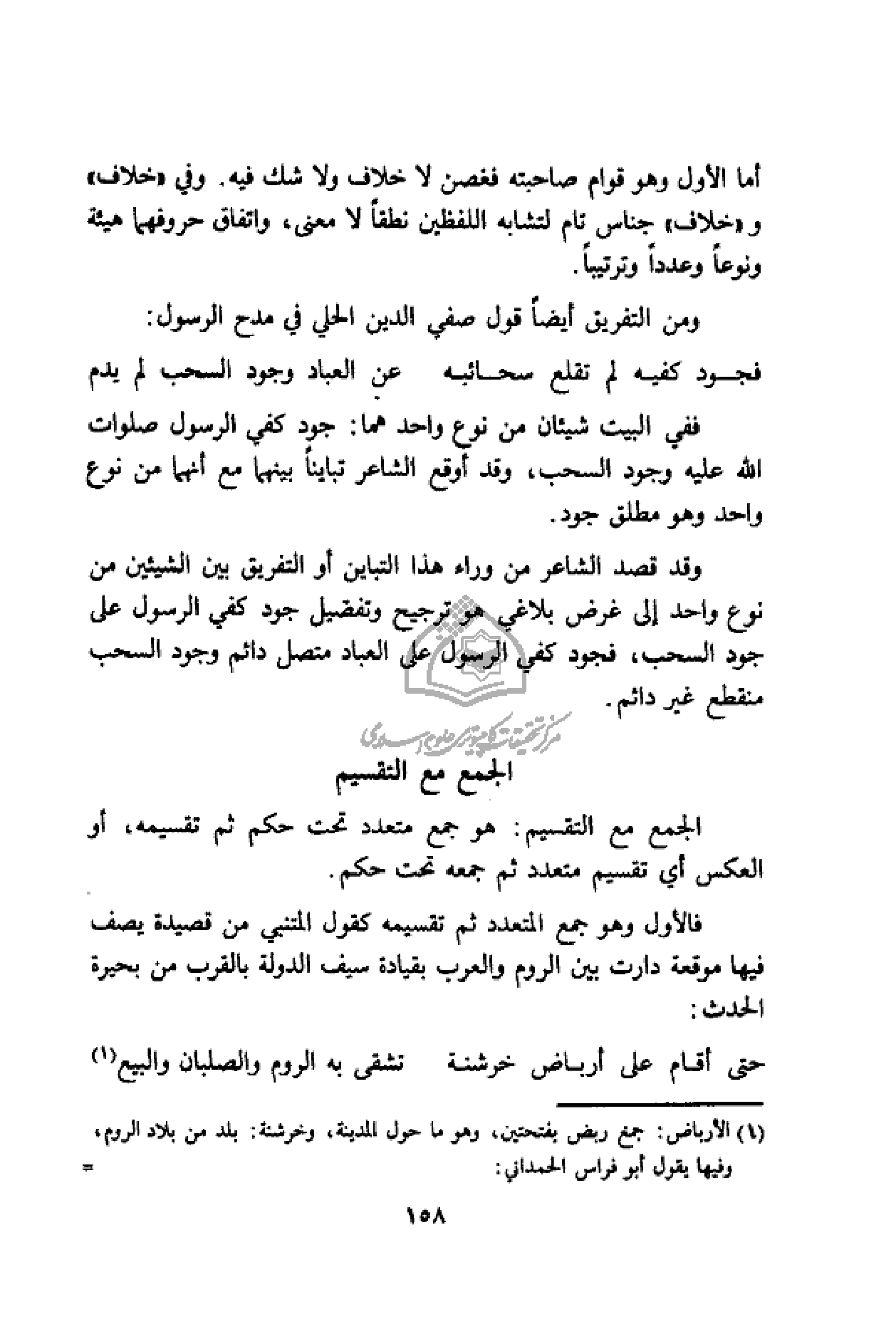 فالأول وهو جمع المتعدد ثم تقسيمه كقول المتنبي من قصيدة يصف فيها موقعة دارت بين الروم والعرب بقيادة