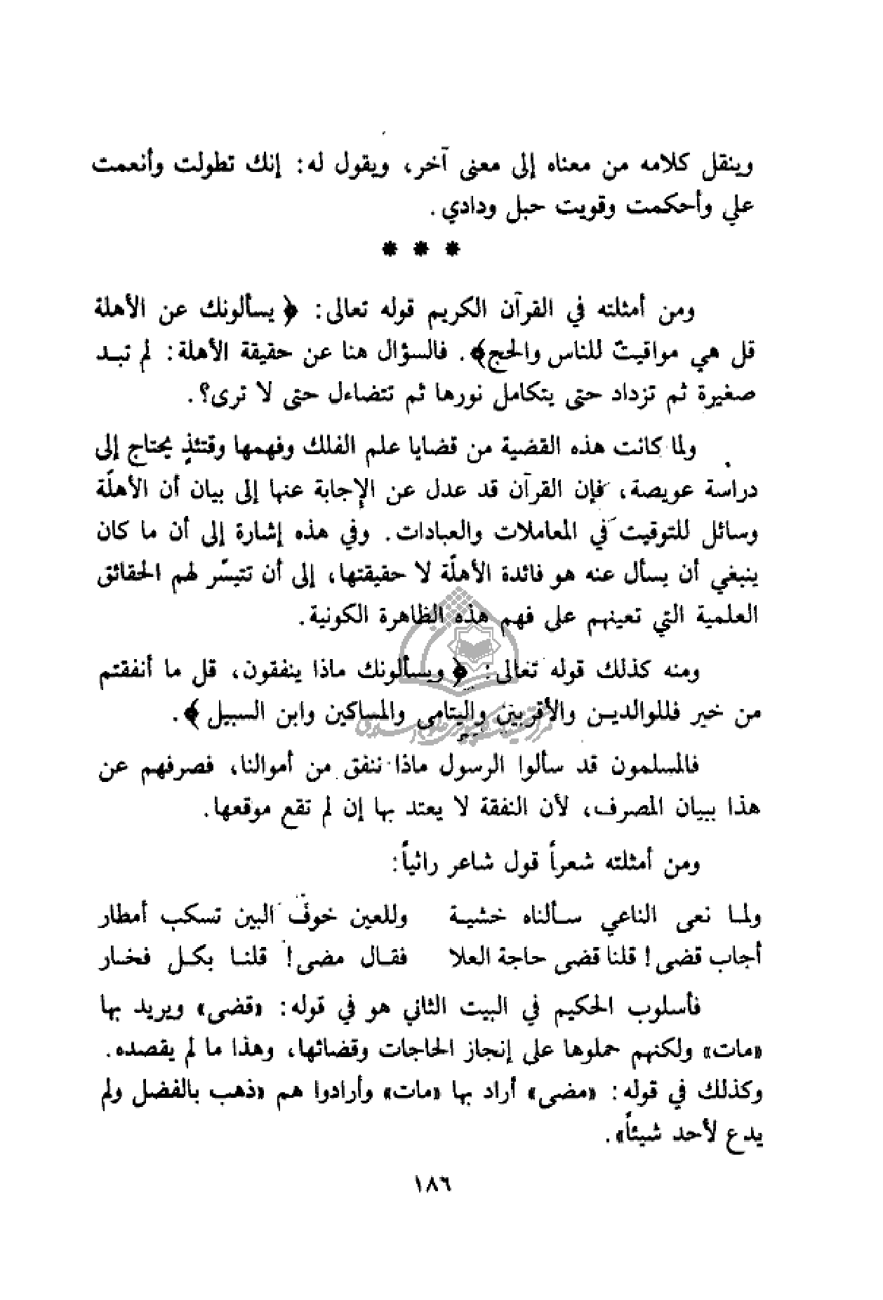 ولما كانت هذه القضية من قضايا علم الفلك وفهمها وقتئذ يحتاج إلى دراسة عويصة، فإن القرآن قد عدل عن الإجابة عنها إلى بيان أن الأهلّة وسائل للتوقيت في المعاملات والعبادات. وفي هذه إشارة إلى أن ما كان ينبغي أن يسأل عنه هو فائدة الأهلّة لا حقيقتها، إلى أن تتيسّر لهم الحقائق العلمية التي تعينهم على فهم هذه الظاهرة الكونية.