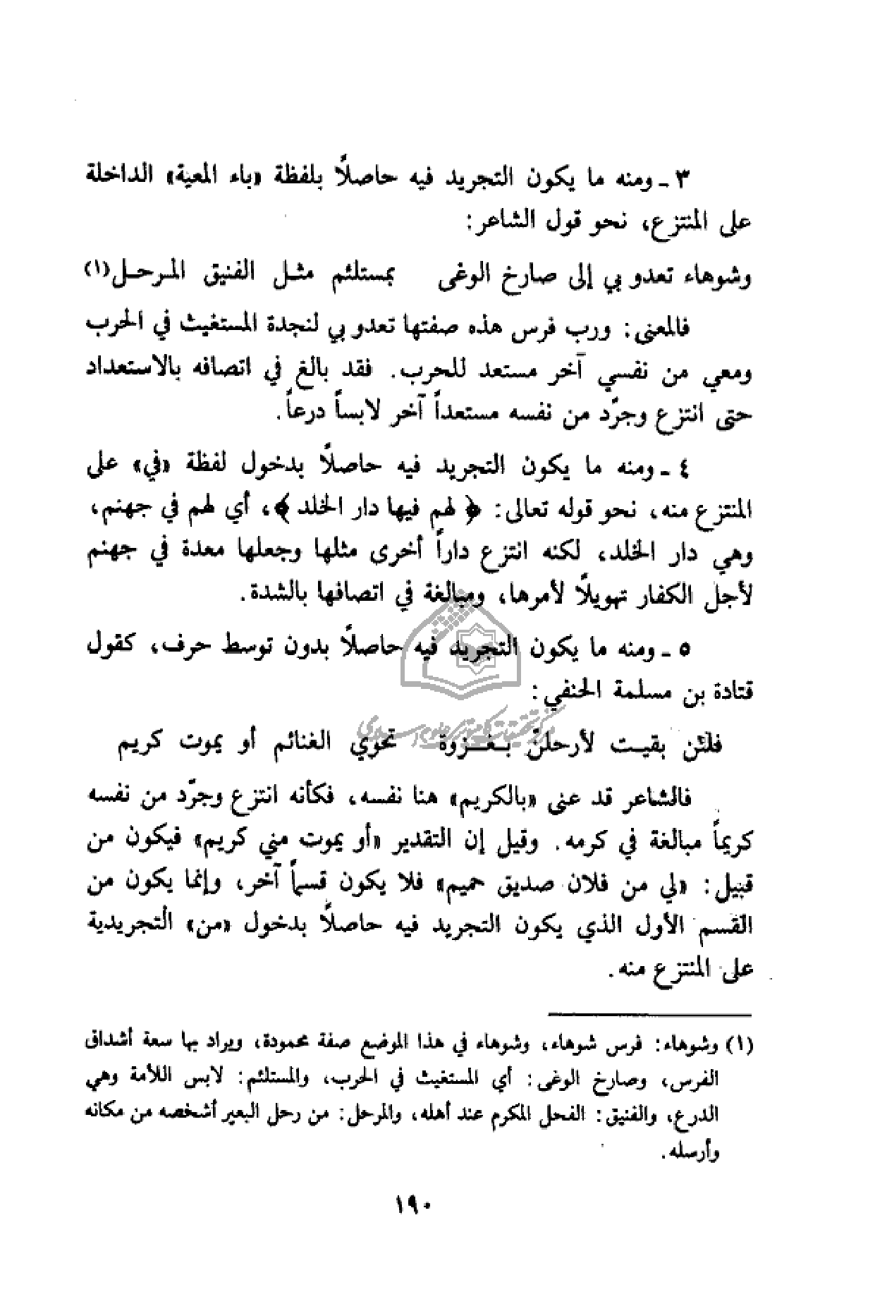 5 - ومنه ما يكون التجريد فيه حاصلا بدون توسط حرف، كقول قتادة بن مسلمة الحنفي: