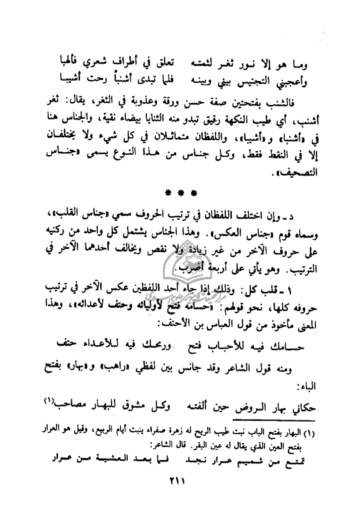 ومنه قول الشاعر وقد جانس بين لفظي «راهب» و «بهار» بفتح الباء: