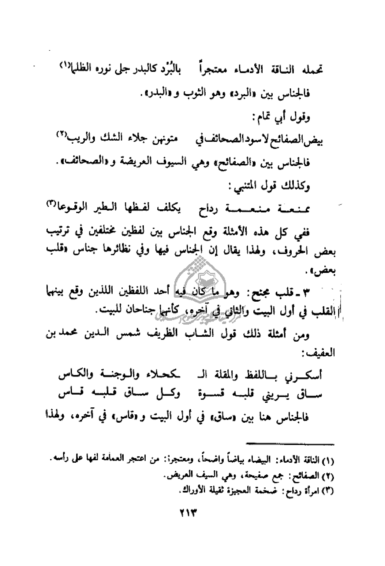 فالجناس بين «الصفائح» وهي السيوف العريضة و «الصحائف».