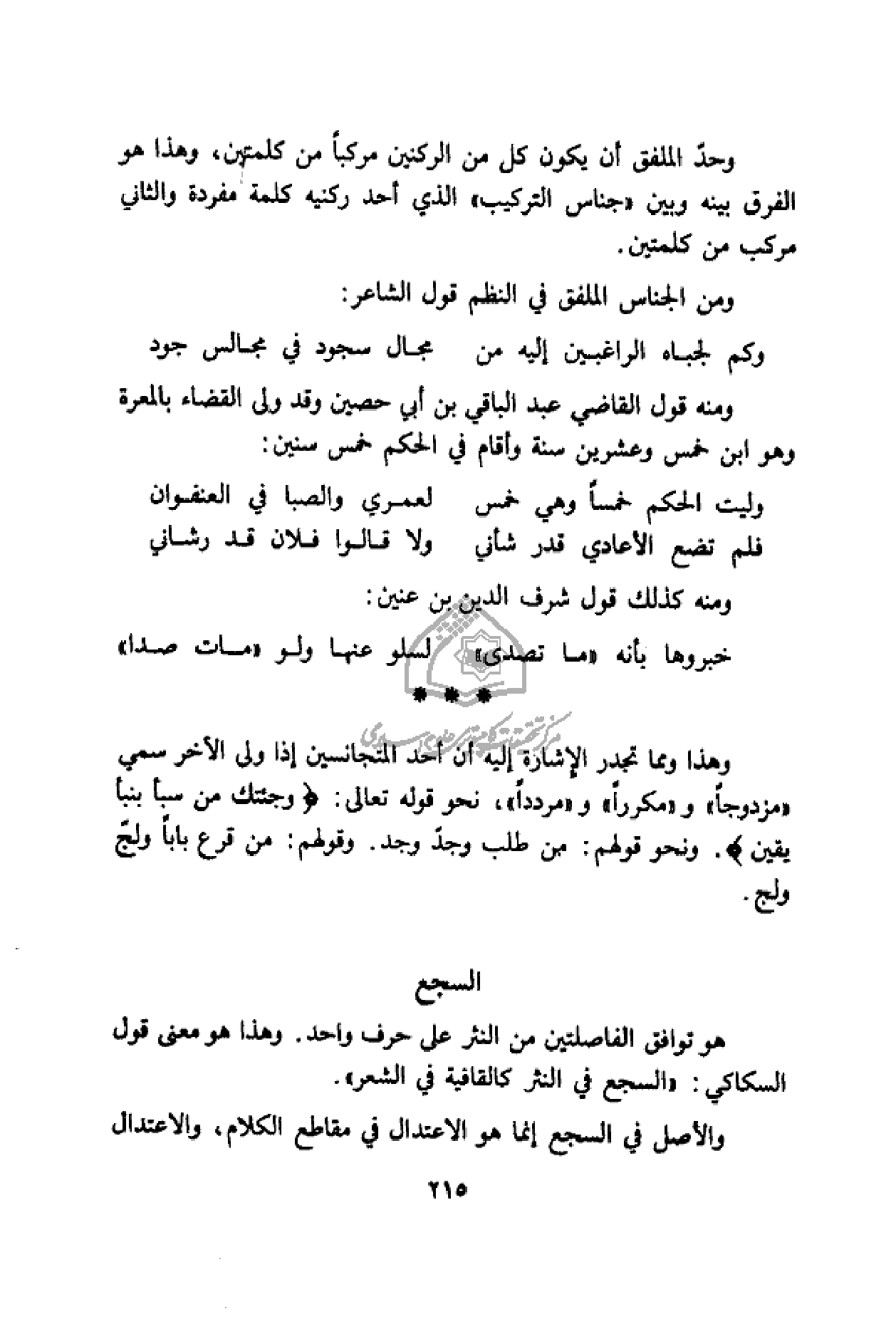 وهذا ومما تجدر الإشارة إليه أن أحد المتجانسين إذا ولى الآخر سمي «مزدوجا» و «مكررا» و «مرددا»، نحو قوله تعالى: وَجِئْتُكَ مِنْ سَبَإٍ بِنَبَإٍ يَقِينٍ. ونحو قولهم: من طلب وجدّ وجد. وقولهم: من قرع بابا ولجّ ولج.