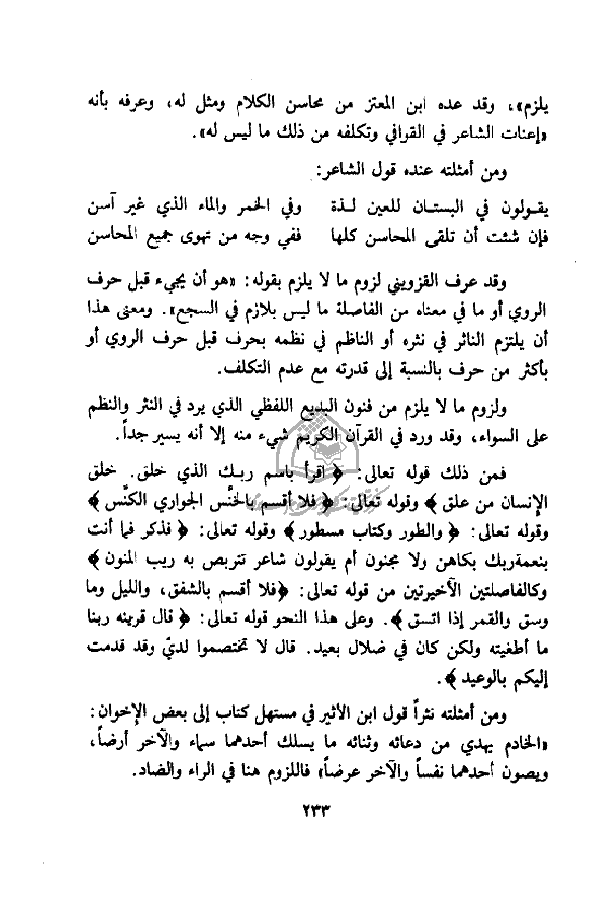 ولزوم ما لا يلزم من فنون البديع اللفظي الذي يرد في النثر والنظم على السواء، وقد ورد في القرآن الكريم شيء منه إلا أنه يسير جدا.