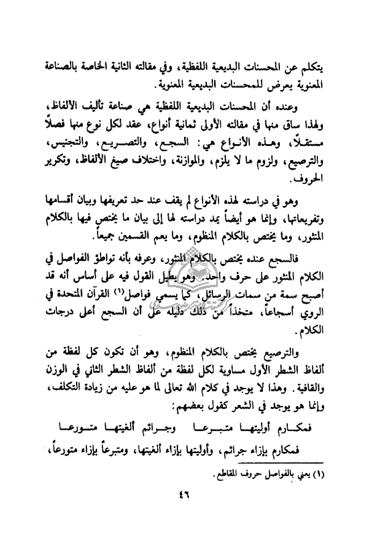 (¬1) يعني بالفواصل حروف المقاطع.
