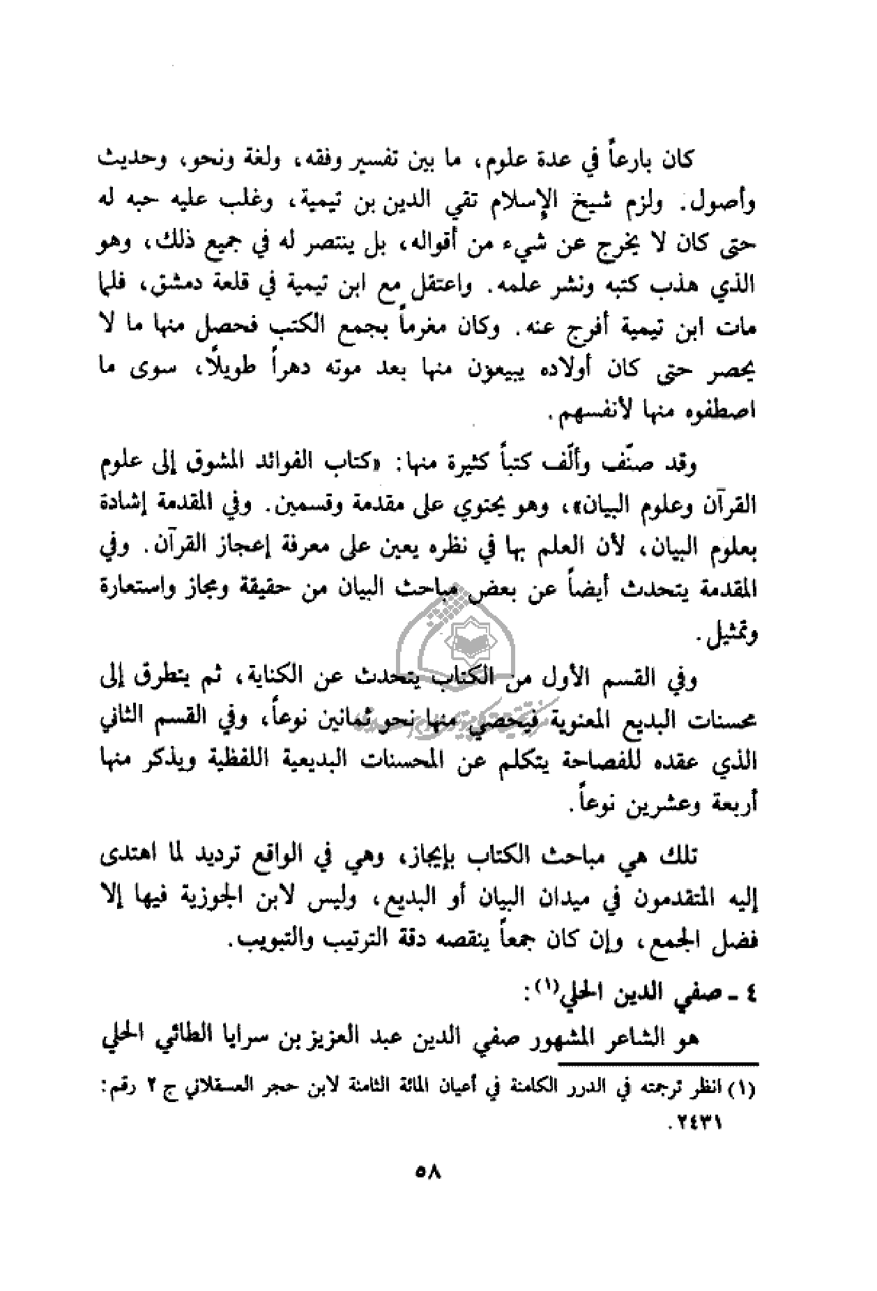 كان بارعا في عدة علوم، ما بين تفسير وفقه، ولغة ونحو، وحديث وأصول. ولزم شيخ الإسلام تقي الدين بن تيمية، وغلب عليه حبه له حتى كان لا يخرج عن شيء من أقواله، بل ينتصر له في جميع ذلك، وهو الذي هذب كتبه ونشر علمه. واعتقل مع ابن تيمية في قلعة دمشق، فلما مات ابن تيمية أفرج عنه. وكان مغرما بجمع الكتب فحصل منها ما لا يحصر حتى كان أولاده يبيعون منها بعد موته دهرا طويلا، سوى ما اصطفوه منها لأنفسهم.