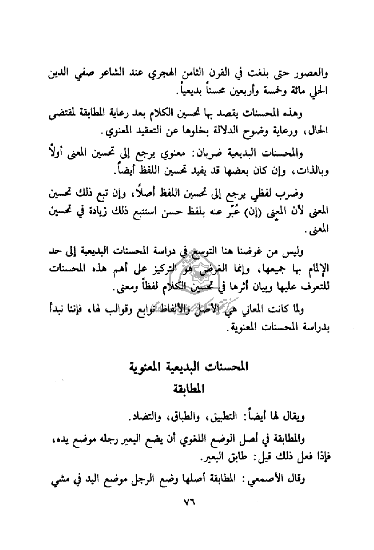 والعصور حتى بلغت في القرن الثامن الهجري عند الشاعر صفي الدين الحلي مائة وخمسة وأربعين محسنا بديعيا.