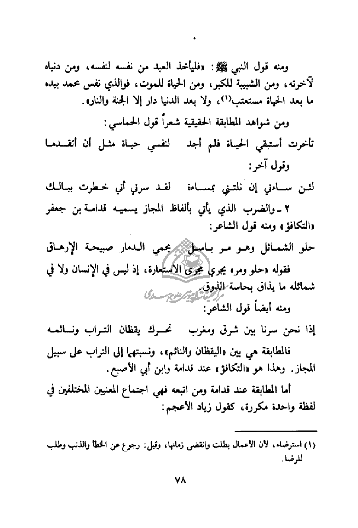 2 - والضرب الذي يأتي بألفاظ المجاز يسميه قدامة بن جعفر «التكافؤ» ومنه قول الشاعر: