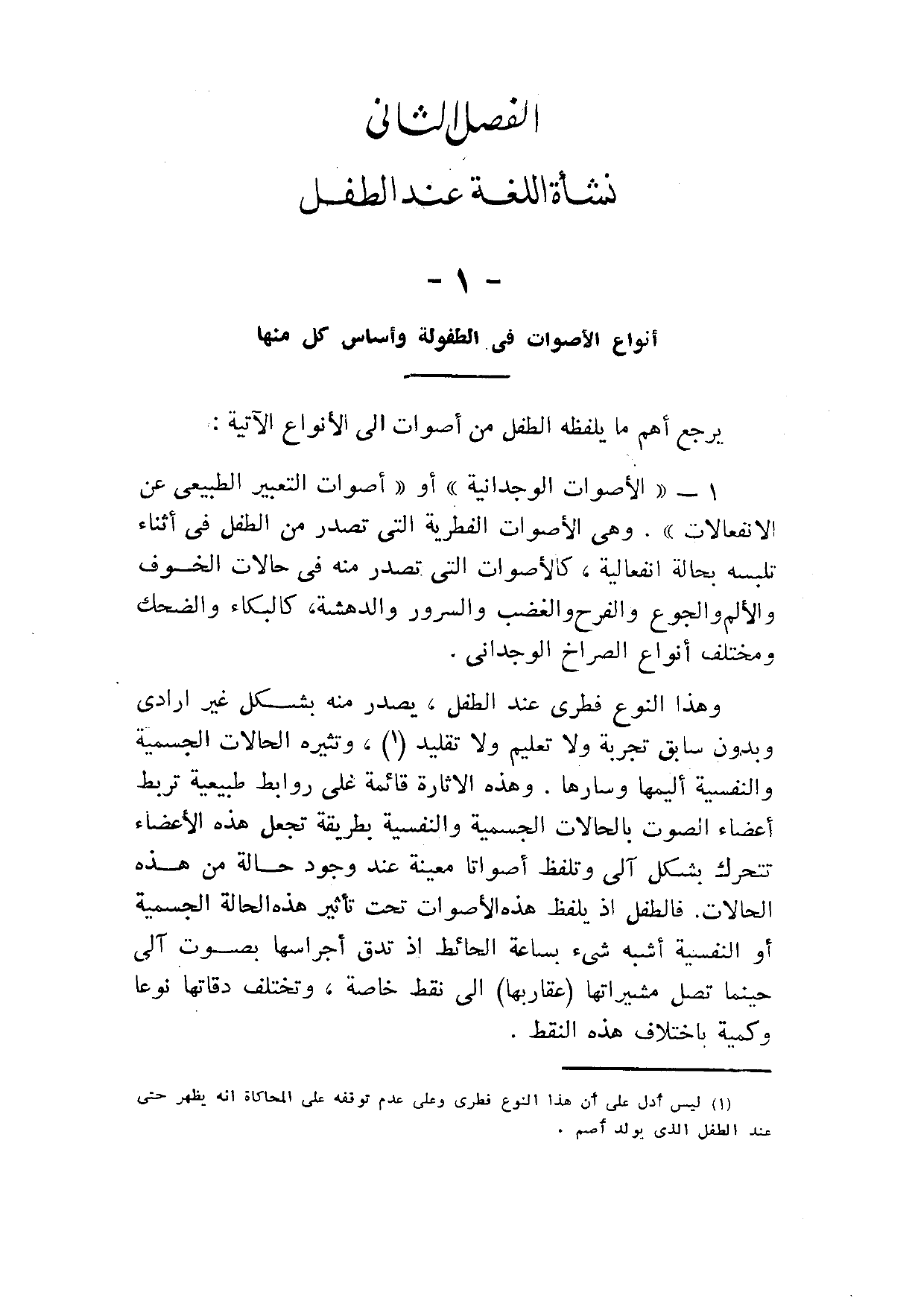 1 ليس أدل على أن هذا النوع فطري, وعلى عدم توقفه على المحاكاة, أنه يظهر حتى عند الطفل الذي يولد أصم.
