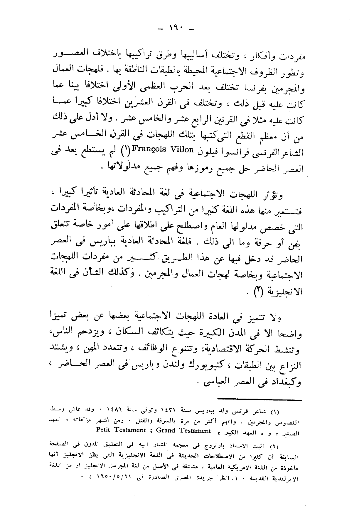 2 أثبت الأستاذ بارتروج في معجمه المشار إليه في التعليق المدون في الصفحة السابقة أن كثيرًا من الاصطلاحات الحديثة في اللغة الإنجليزية التي يظن الإنجليز أنها مأخوذة من اللغة الأمريكية العامية، مشتقة في الأصل من لغة المجرمين الإنجليز, أو من اللغة الإيرلندية القديمة. "انظر جريدة المصري الصادرة في 21/ 5/ 1950.