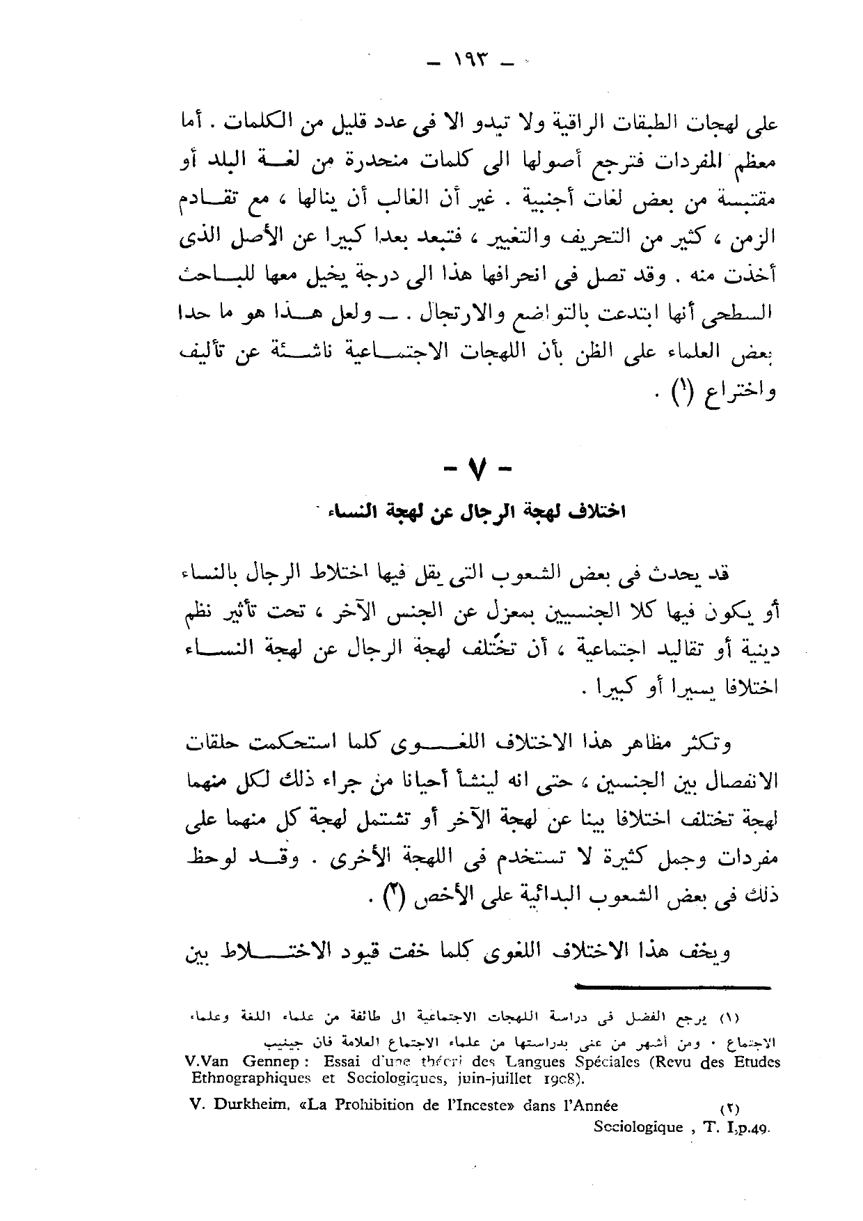 1 يرجع الفضل في دراسة اللهجات الاجتماعية إلى طائفة من علماء اللغة وعلماء الاجتماع، ومن أشهر من عني بدراستها من علماء الاجتماع العلامة فان جينيب.