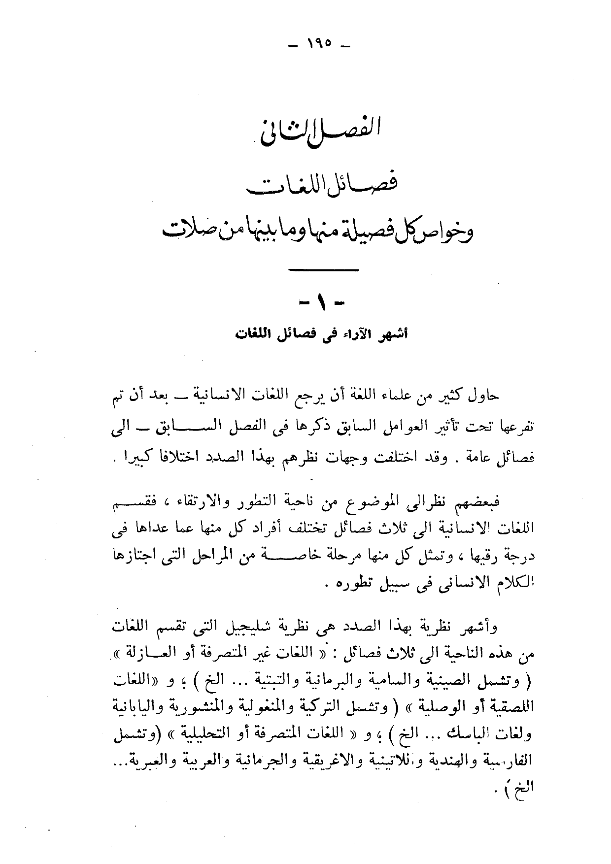 الفصل الثاني: فصائل اللغات وخواص كل فصيلة منها وما بينها من صلات: