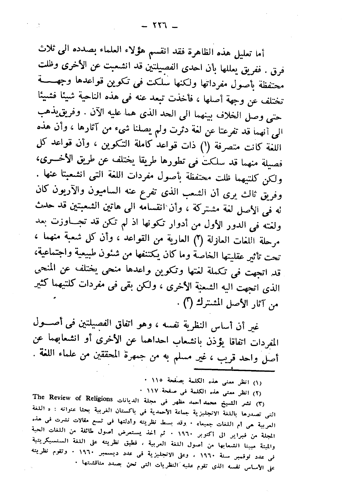 3 نشر الشيخ محمد أحمد مظهر في مجلة الديانات The Review of Religions التي تصدرها باللغة الإنجليزية جماعة الأحمدية في باكستان الغربية بحثًا عنوانه: "اللغة العربية هي أم اللغات جميعًا". وقد بسط نظريته وأدلتها في تسع مقالات نشرت في هذه المجلة من فبراير إلى أكتوبر 1960, ثم أخذ يستعرض أصول طائفة من اللغات الحية والميتة مبينًا انشعابها من أصول اللغة العربية، فطبق نظريته على اللغة السنسيكريتية في عدد نوفمبر سنة 1960، وعلى الإنجليزية في عدد ديسمبر 1960, وتقوم نظريته على الأساس نفسه الذي تقوم عليه النظريات التي نحن بصدد مناقشتها.