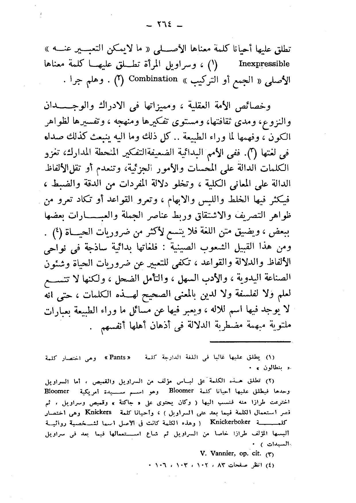 تطلق عليها أحيانًا كلمة معناها الأصلي "ما لا يمكن التعبير عنه"1 lnexpressible، وسراويل المرأة تطلق عليها كلمة معناها الأصلي "الجمع أو التركيب"2 Combination. وهلم جرا.