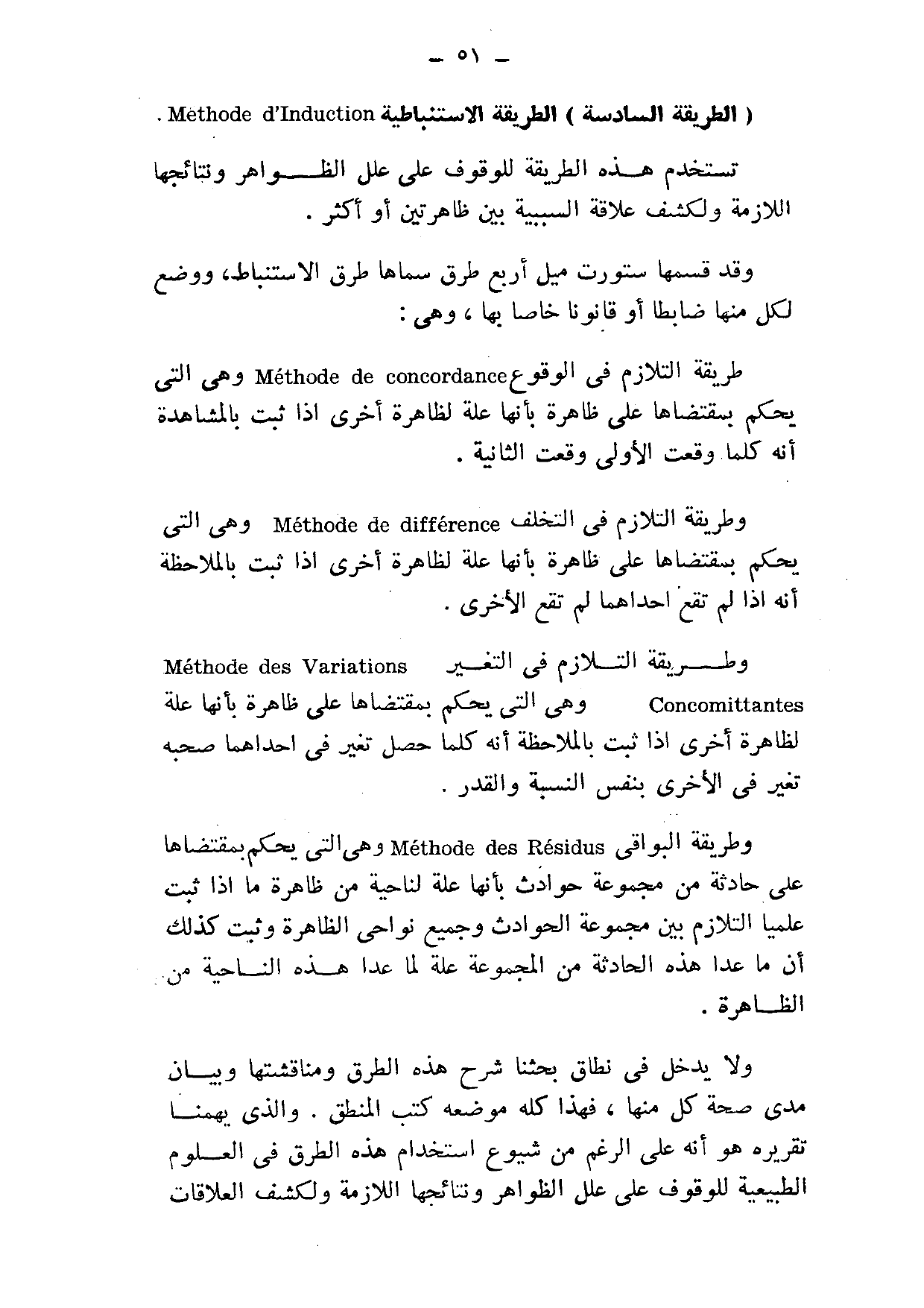 ولا يدخل في نطاق بحثنا شرح هذه الطرق ومناقشتها وبيان مدى صحة كل منها، فهذا كله موضعه كتب المنطق, والذي يهمنا تقريره هو أنه على الرغم من شيوع استخدام هذه الطرق في العلوم الطبيعية للوقوف على علل الظواهر ونتائجها اللازمة, ولكشف العلاقات