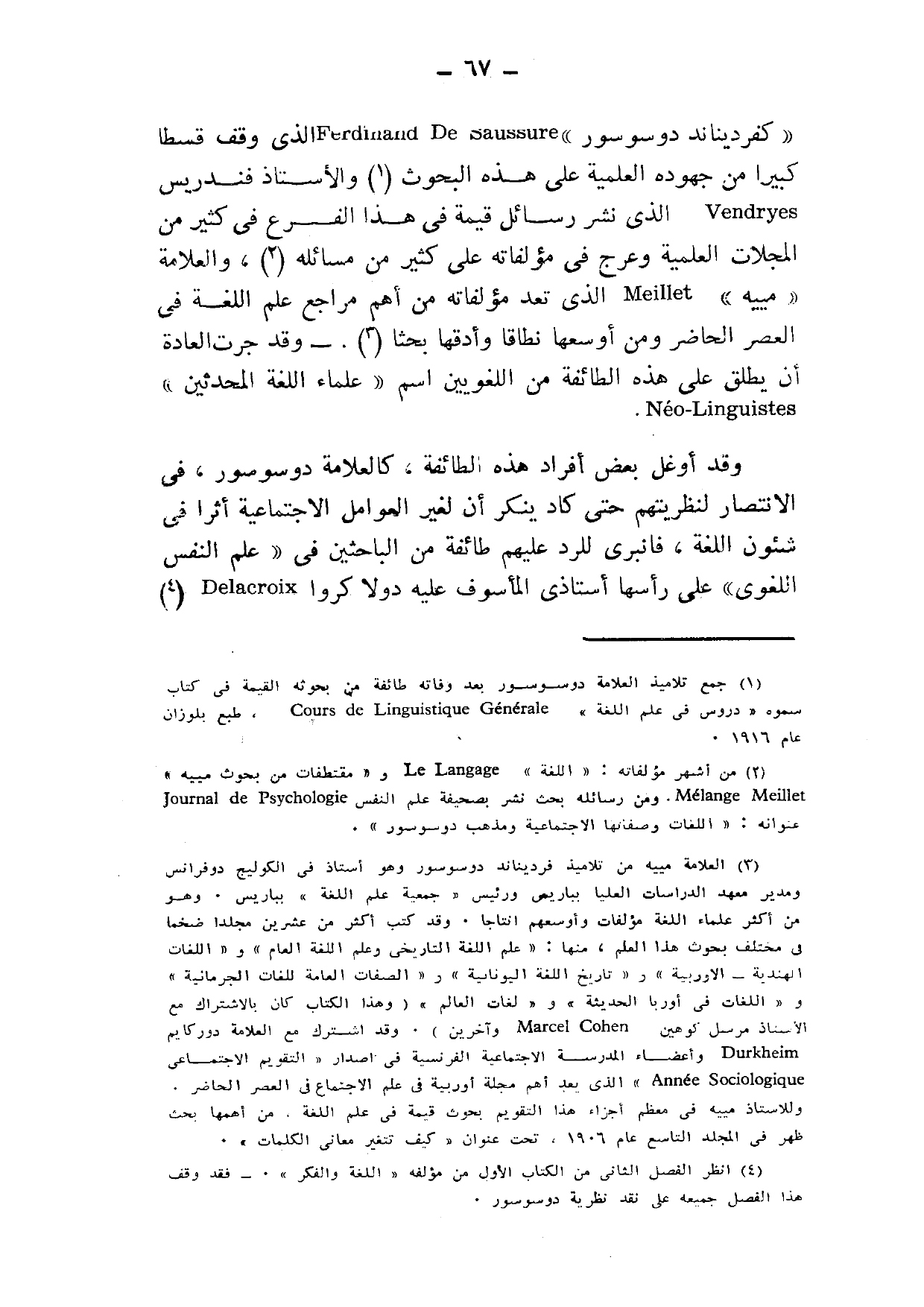4 انظر الفصل الثاني من الكتاب الأول من مؤلفه "اللغة والفكر"؛ فقد وقف هذا الفصل جميعه على نقد نظرية دوسوسور.