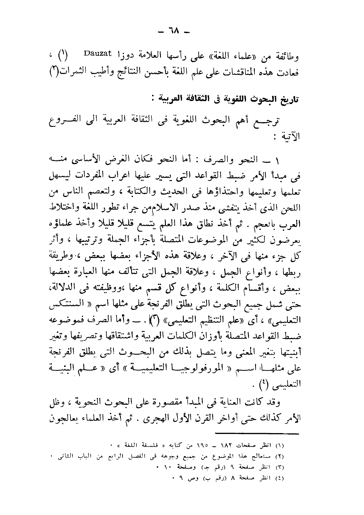 وطائفة من "علماء اللغة", على رأسها العلامة دوزا1 Dauzat، فعادت هذه المناقشات على علم اللغة بأحسن النتائج وأطيب الثمرات2.