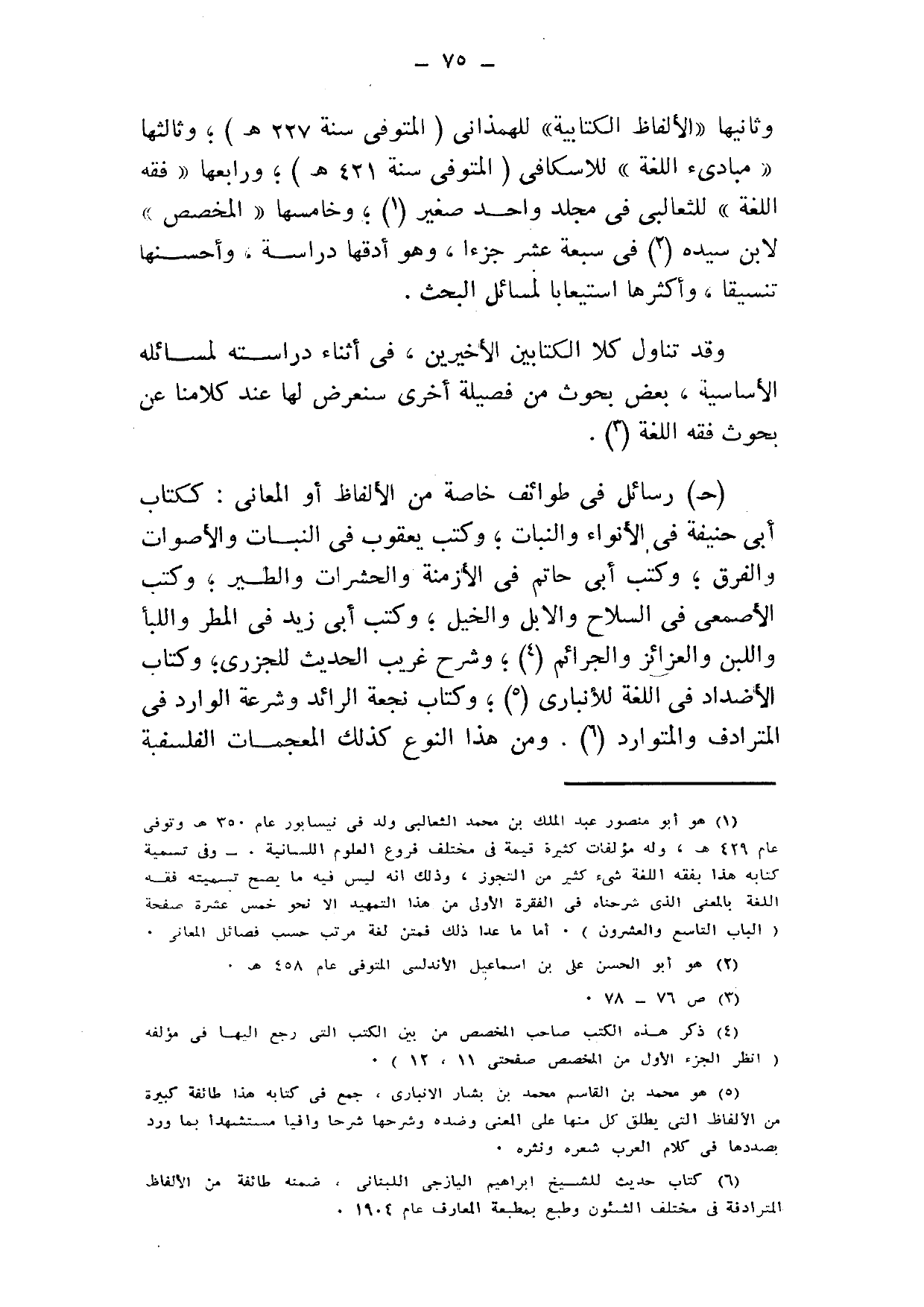 وقد تناول كلا الكتابين الأخيرين، في أثناء دراسته لمسائله الأساسية، بعض بحوث من فصيلة أخرى سنعرض لها عند كلامنا عن بحوث فقه اللغة3.