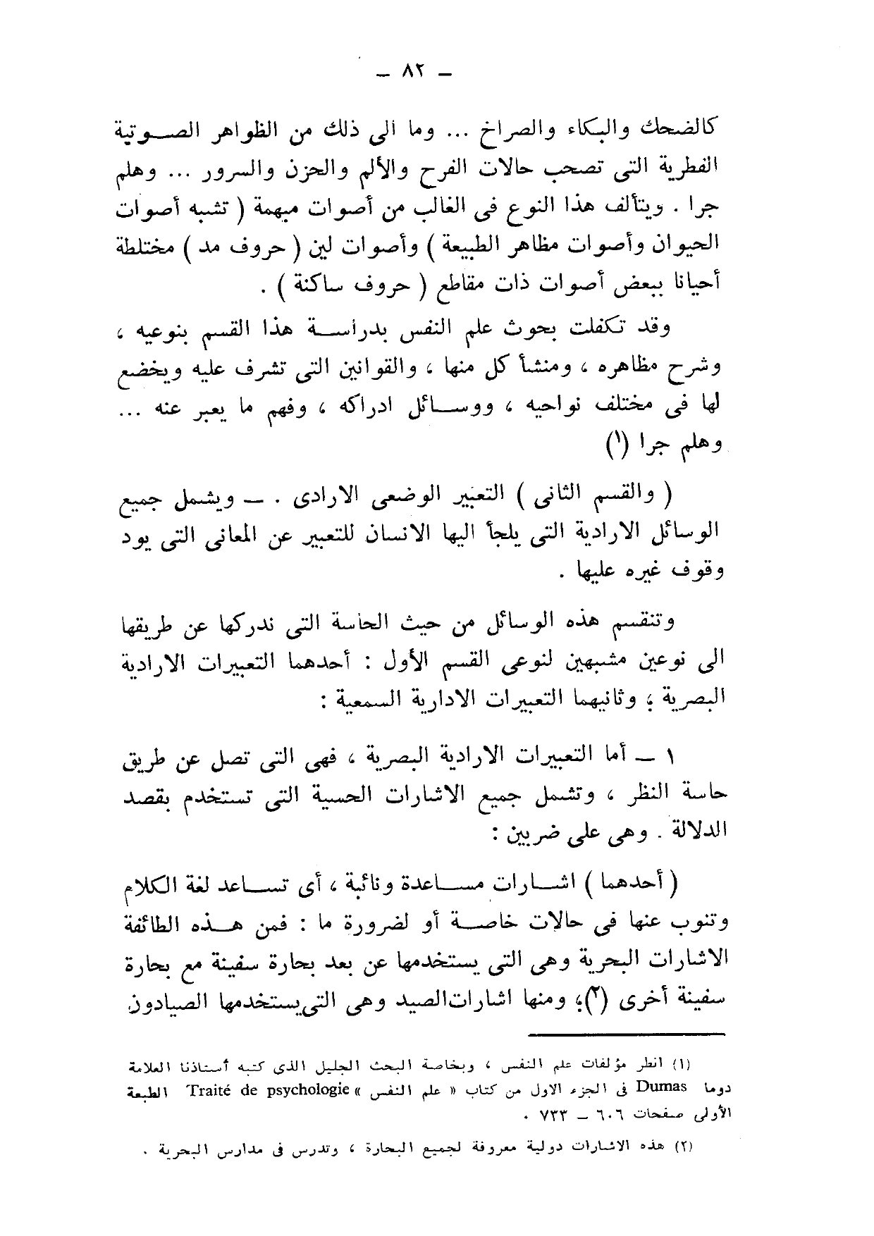 1 انظر مؤلفات علم النفس، وبخاصة البحث الجليل الذي كتبه أستاذنا العلامة دوما Dumas في الجزء الأول من كتاب "علم النفس" Traite de psychologie الطبعة الأولى صفحات 606-733.