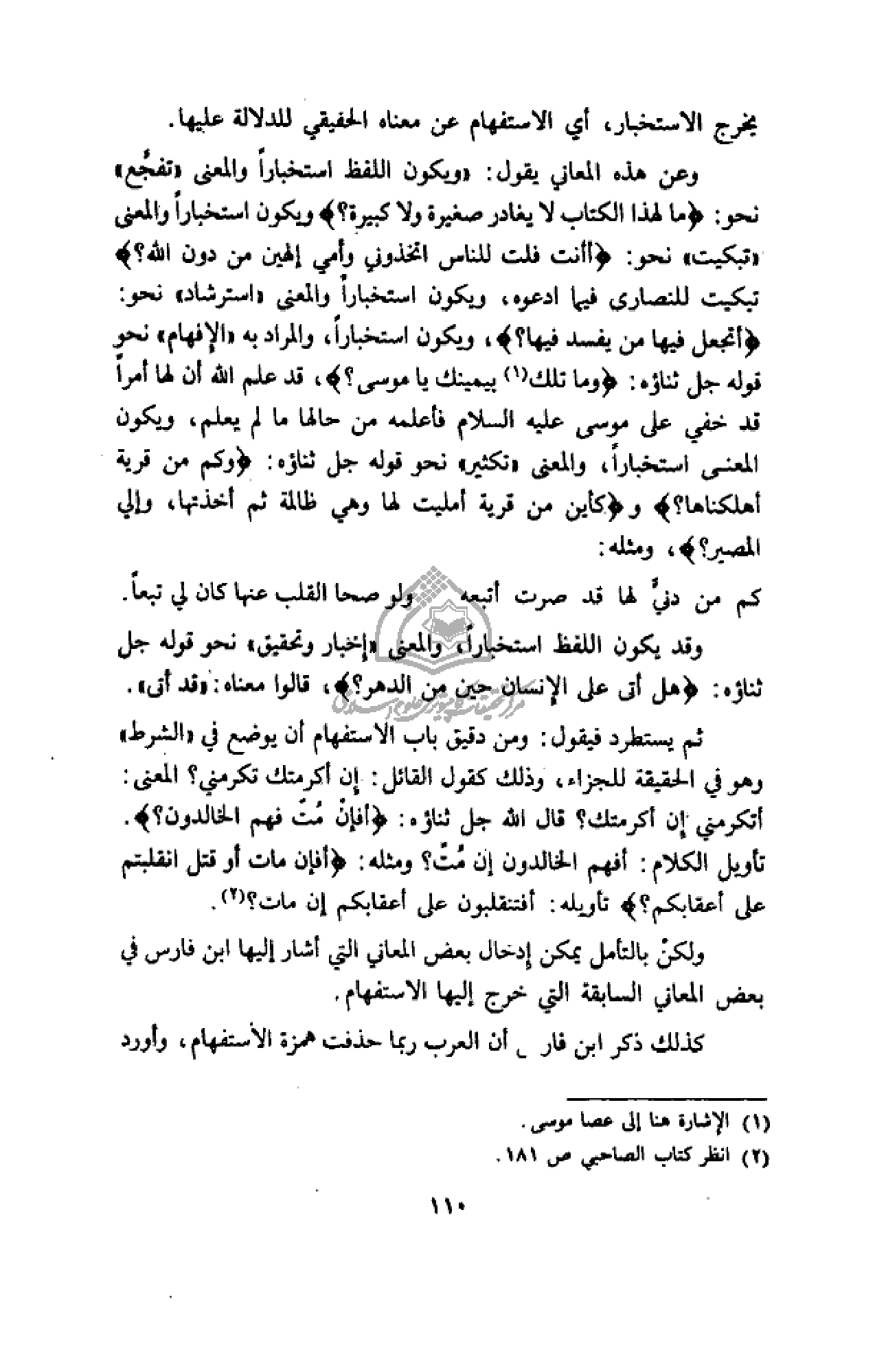 وعن هذه المعاني يقول: «ويكون اللفظ استخبارا والمعنى «تفجّع» نحو: مالِ هذَا الْكِتابِ لا يُغادِرُ صَغِيرَةً وَلا كَبِيرَةً؟ ويكون استخبارا والمعنى «تبكيت» نحو: أَأَنْتَ قُلْتَ لِلنَّاسِ اتَّخِذُونِي وَأُمِّي إِلهَيْنِ مِنْ دُونِ اللَّهِ؟ تبكيت للنصارى فيما