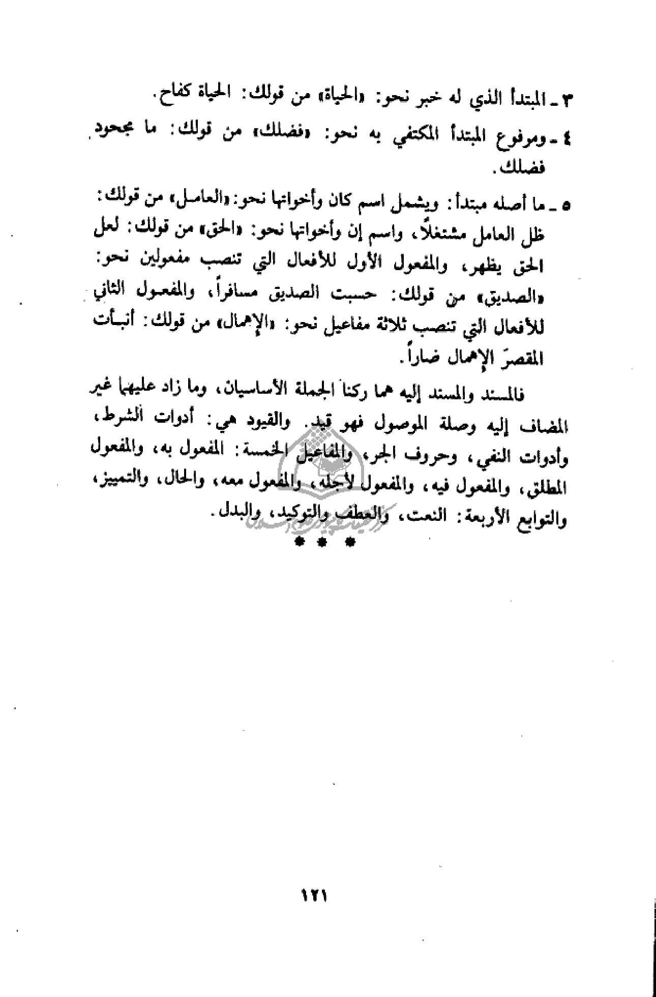 4 - ومرفوع المبتدأ المكتفي به نحو: «فضلك» من قولك: ما مجحود فضلك.