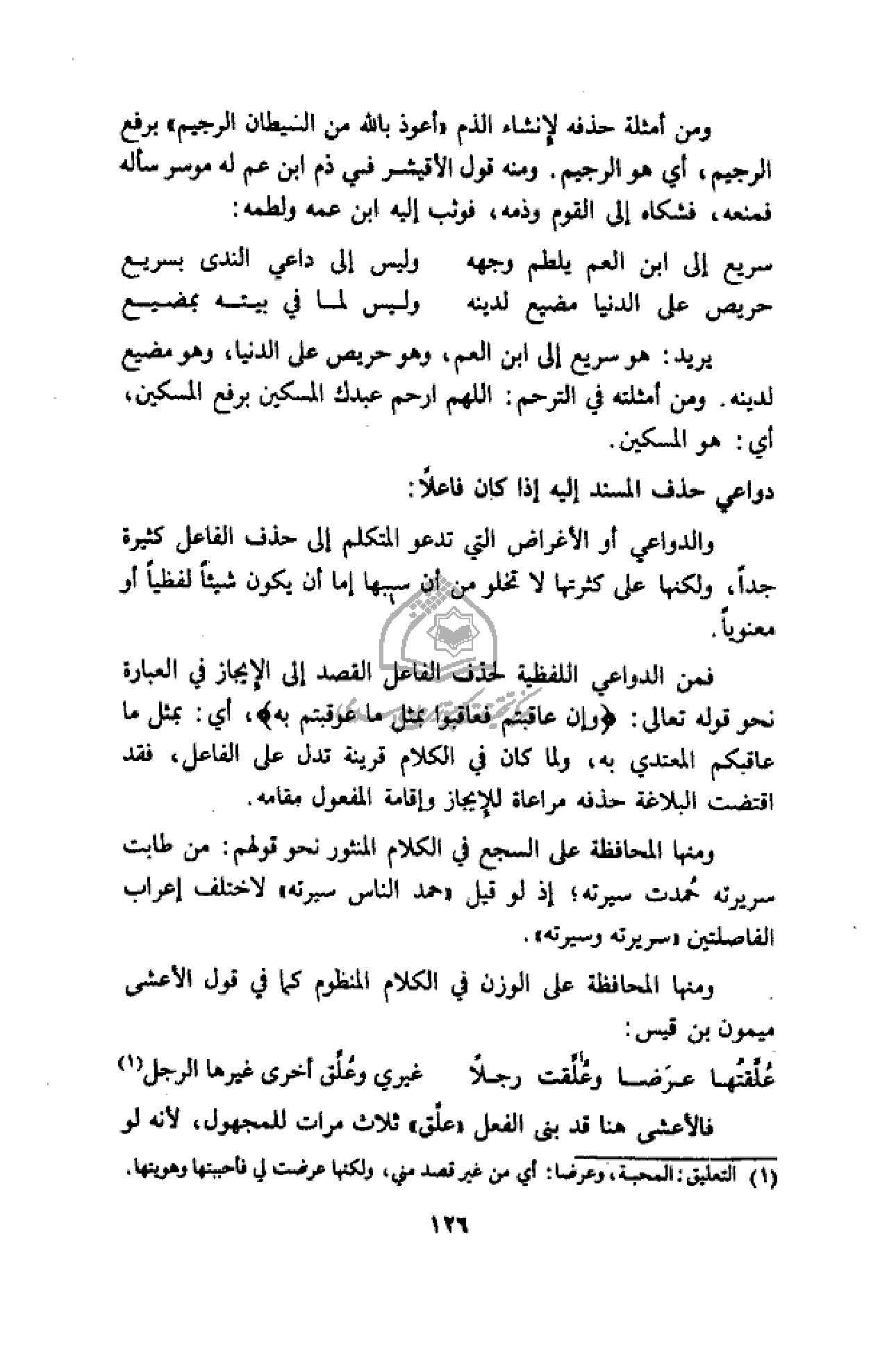 ومنها المحافظة على الوزن في الكلام المنظوم كما في قول الأعشى ميمون بن قيس: